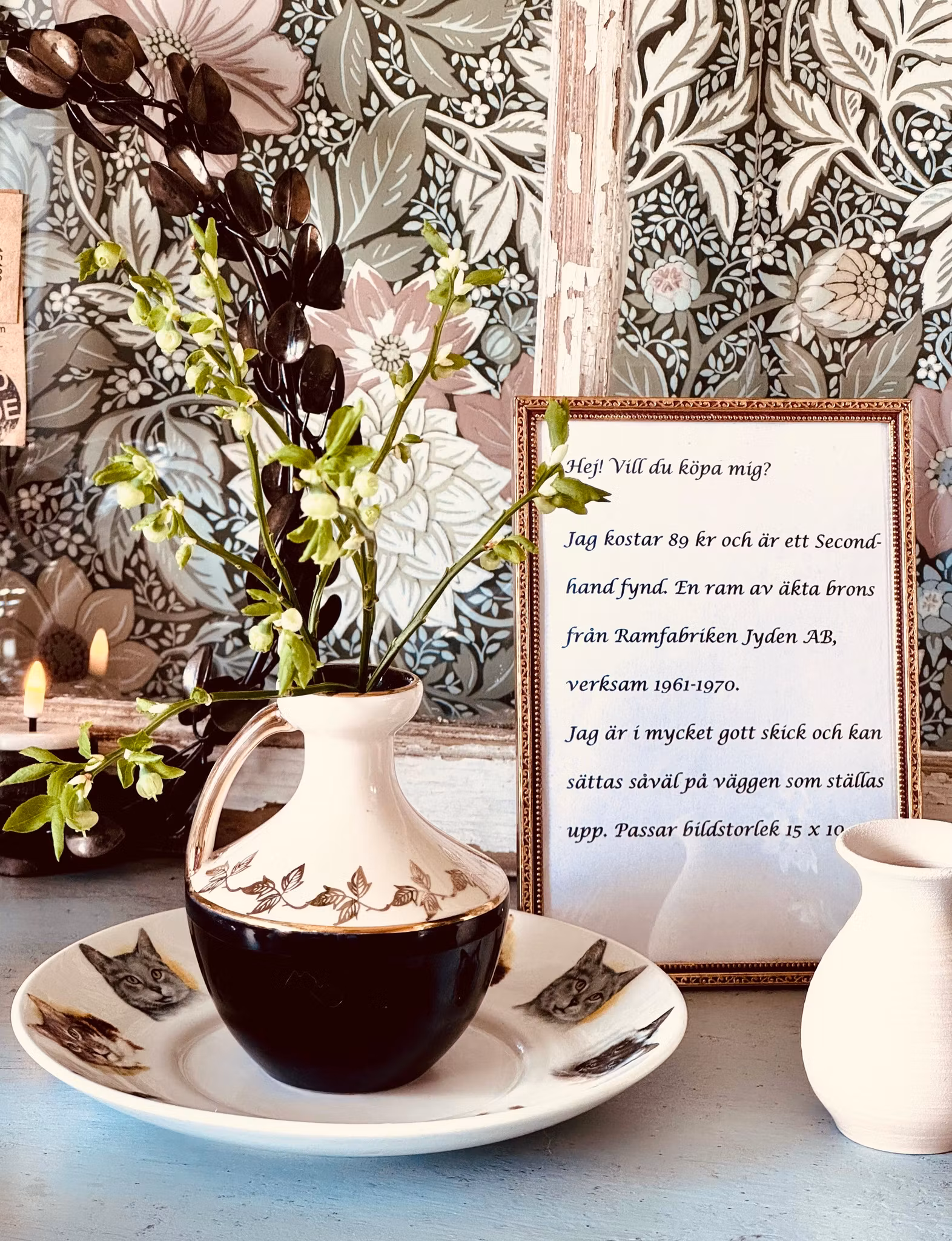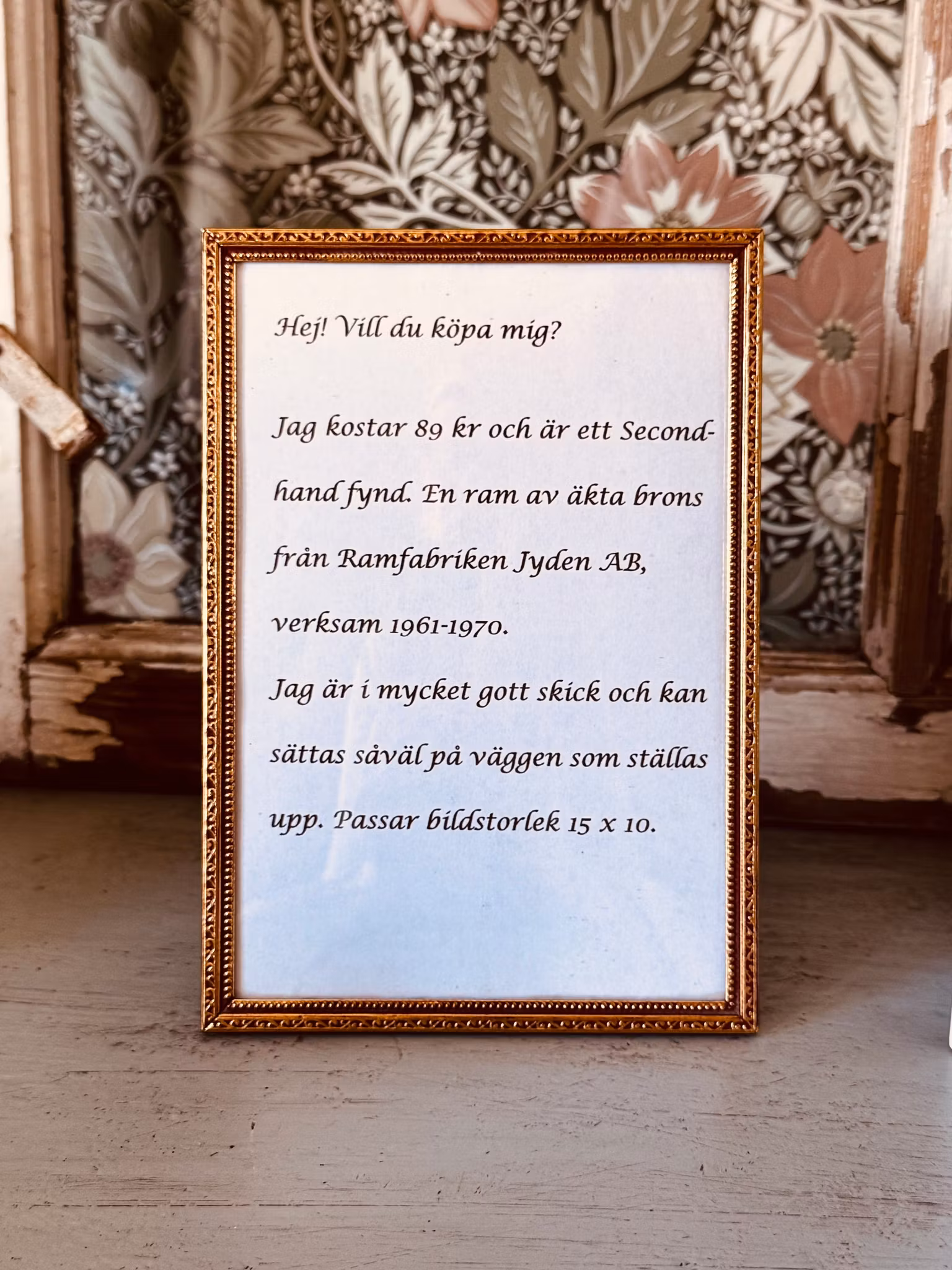 En vacker gammal ram i äkta brons från Ramfabriken Jyden (Second hand). Pryds av en fin guldfärgad kant. Mycket fint skick!