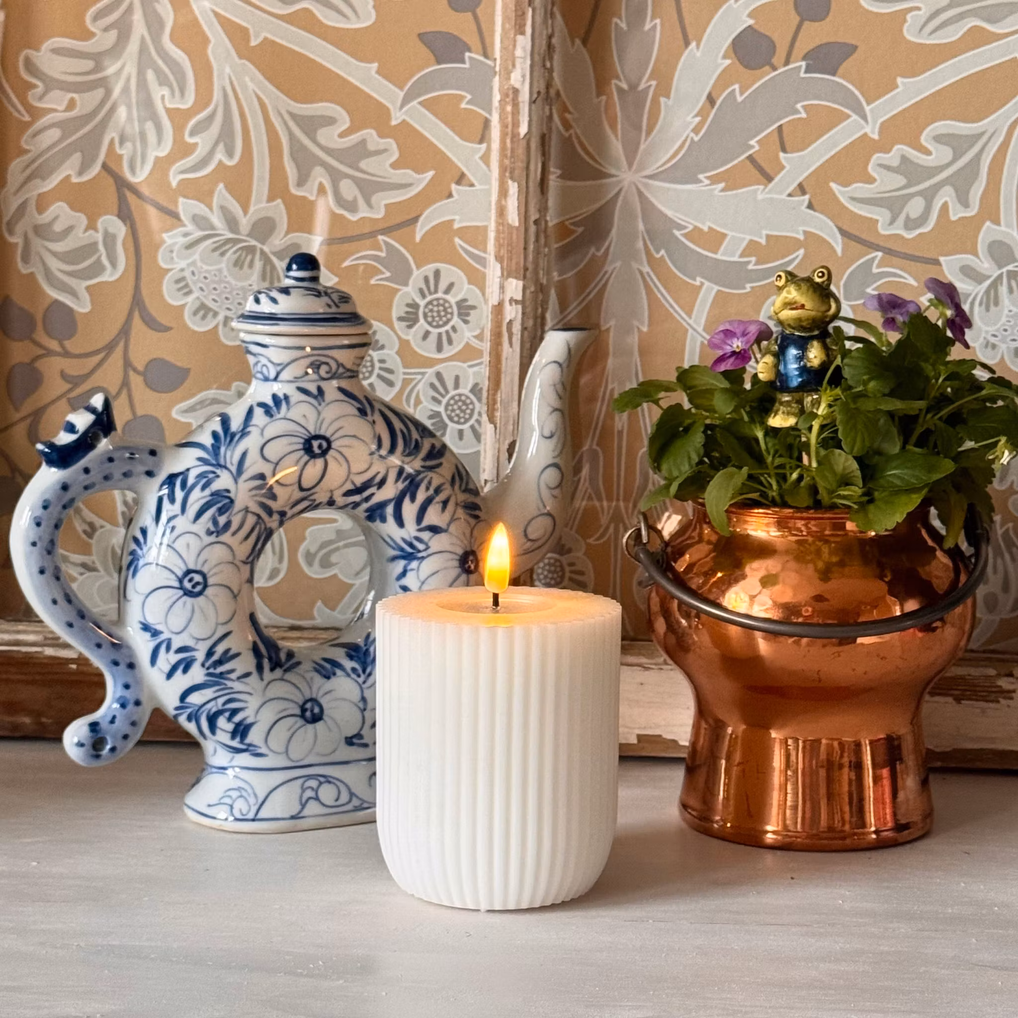 Vacker kanna i porslin (Second hand) som vi föll för den direkt när vi såg den. Så rolig i sin utformning och vacker i blått och vitt.