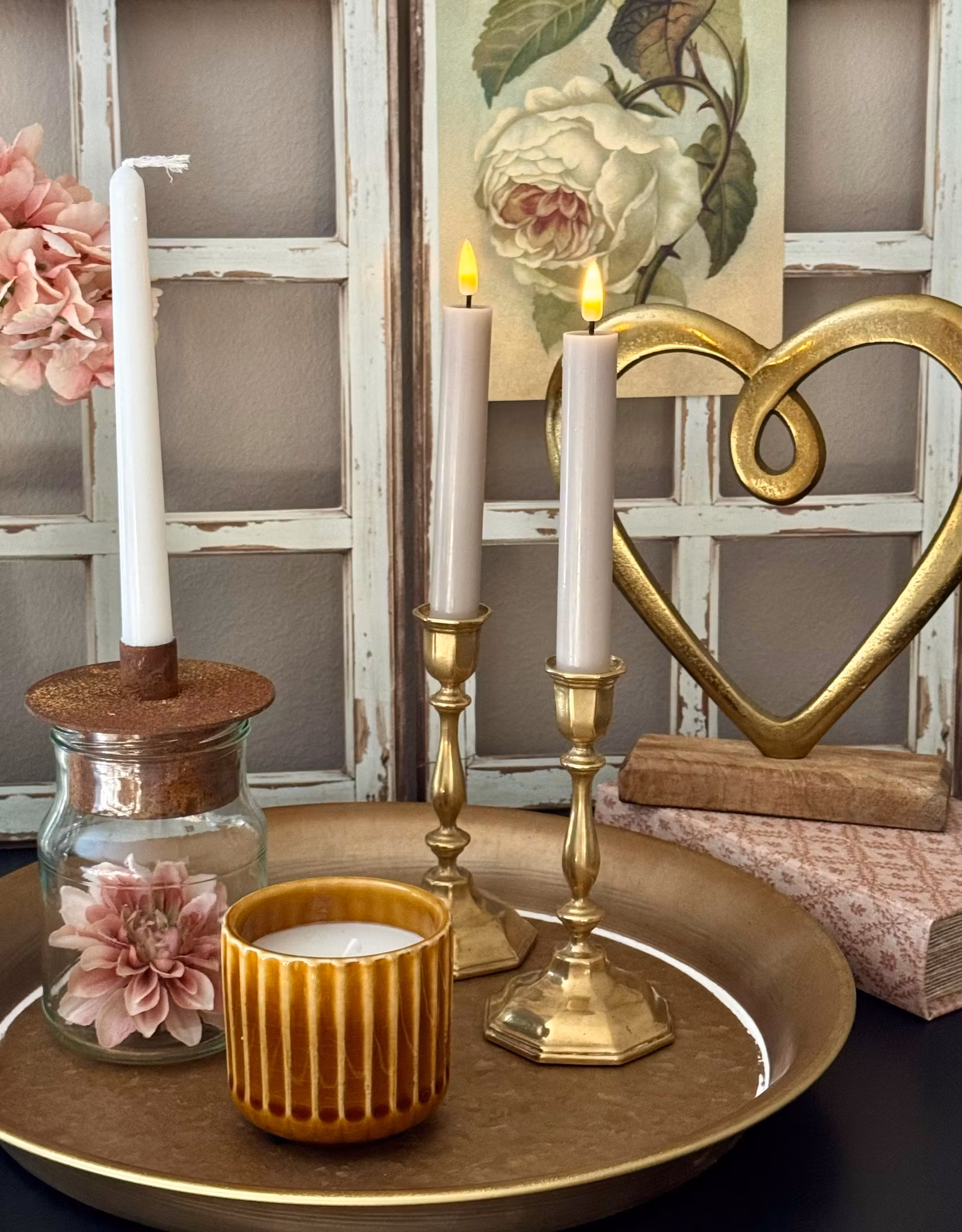 De här klassiska och gedigna ljushållarna i mässing (Second hand) går aldrig ur tiden och blir hur fina som helst på bordet eller i fönstret.