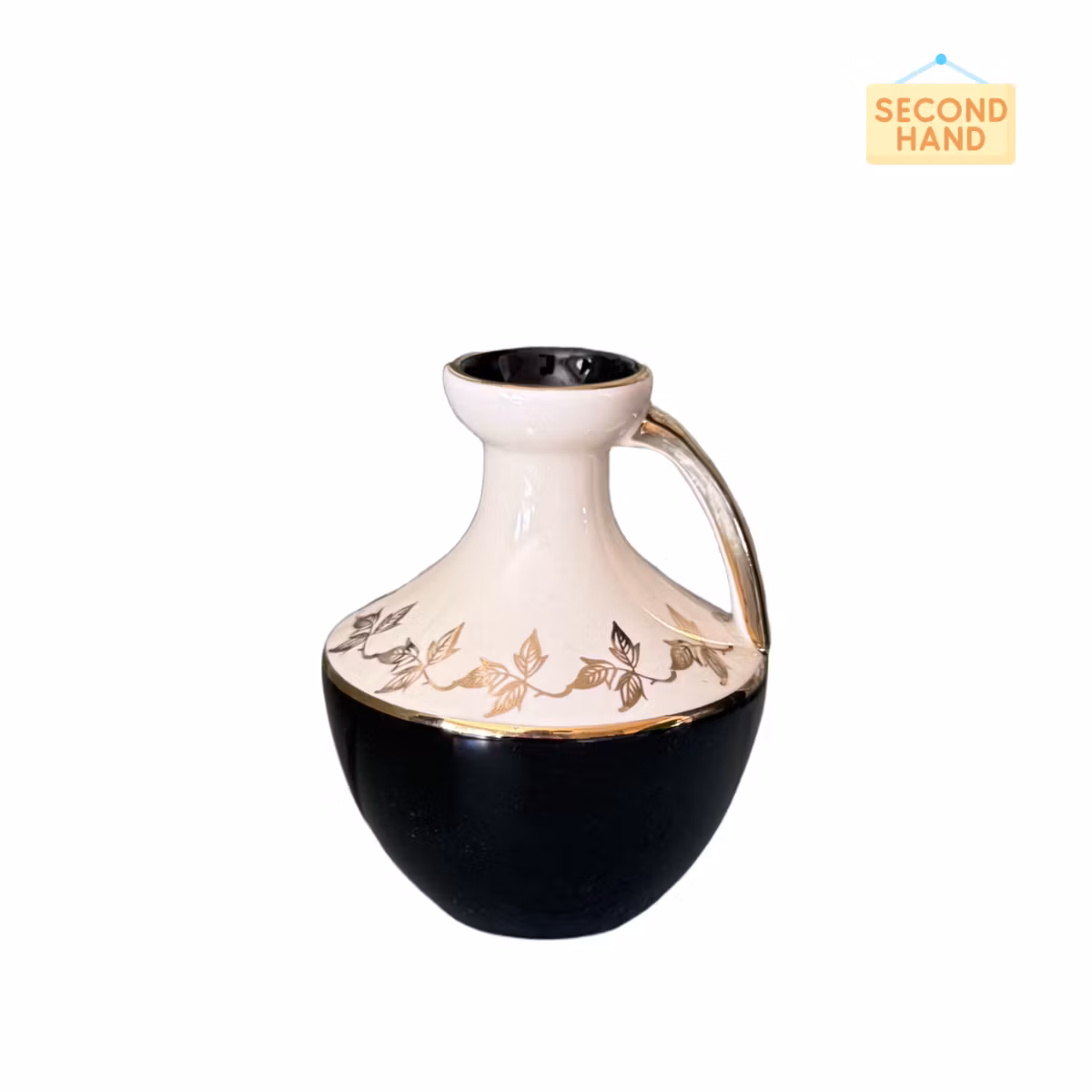 En snygg mindre vas (Second hand) i svart, benvitt och guld. Passar för den lilla buketten, till exempel vitsippor eller kortare luktärter.