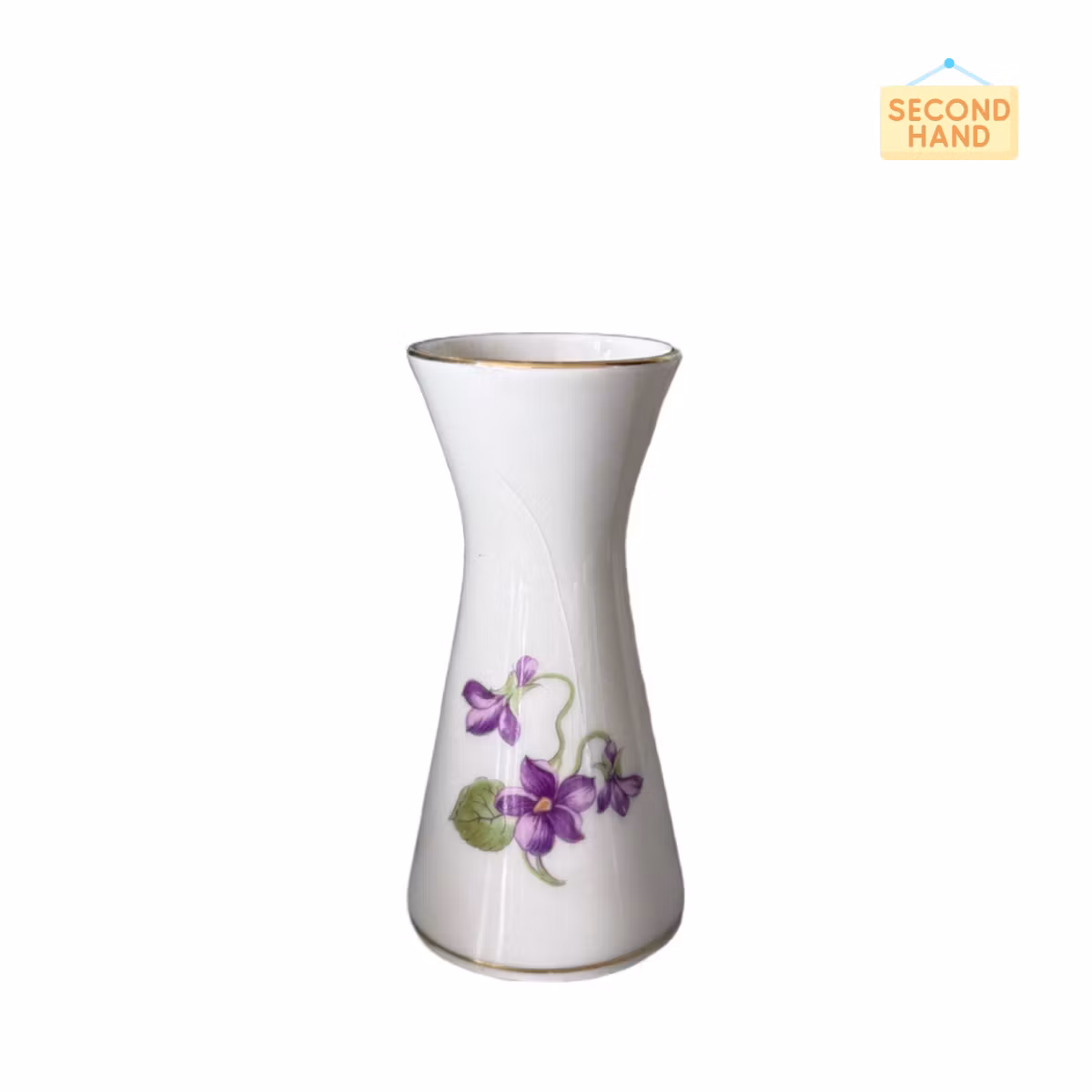 En jättesöt mindre vas (Second hand) med avbild av en luktärt och guldrand. Passar för den lilla buketten, till exempel vitsippor eller kortare luktärter.