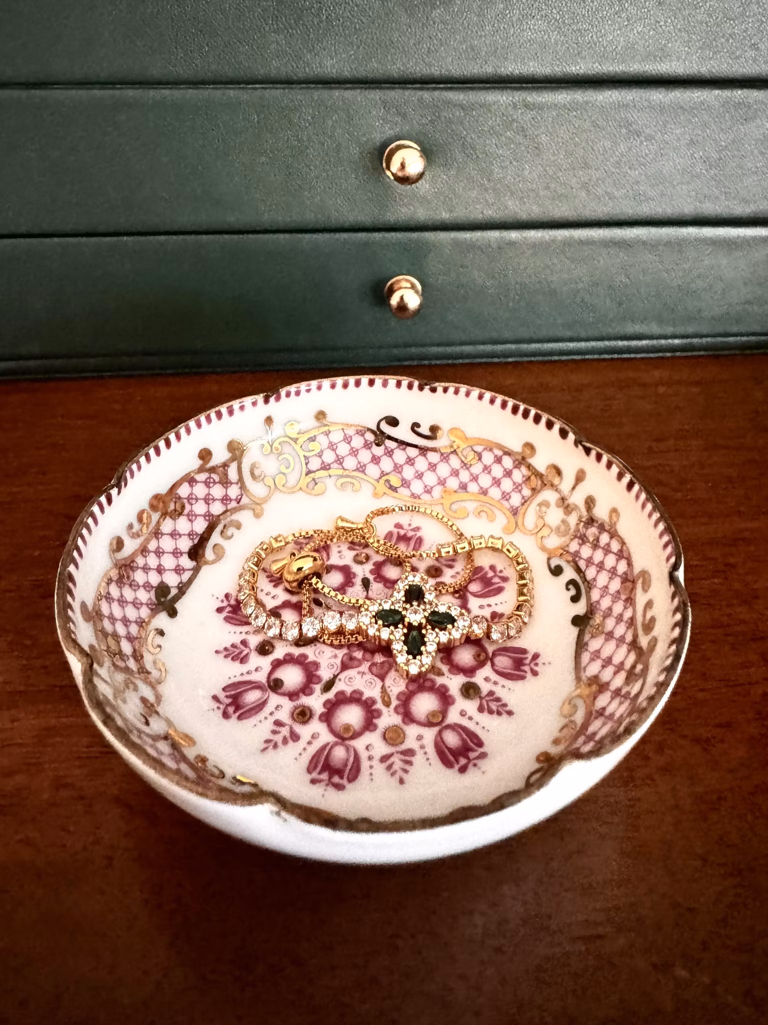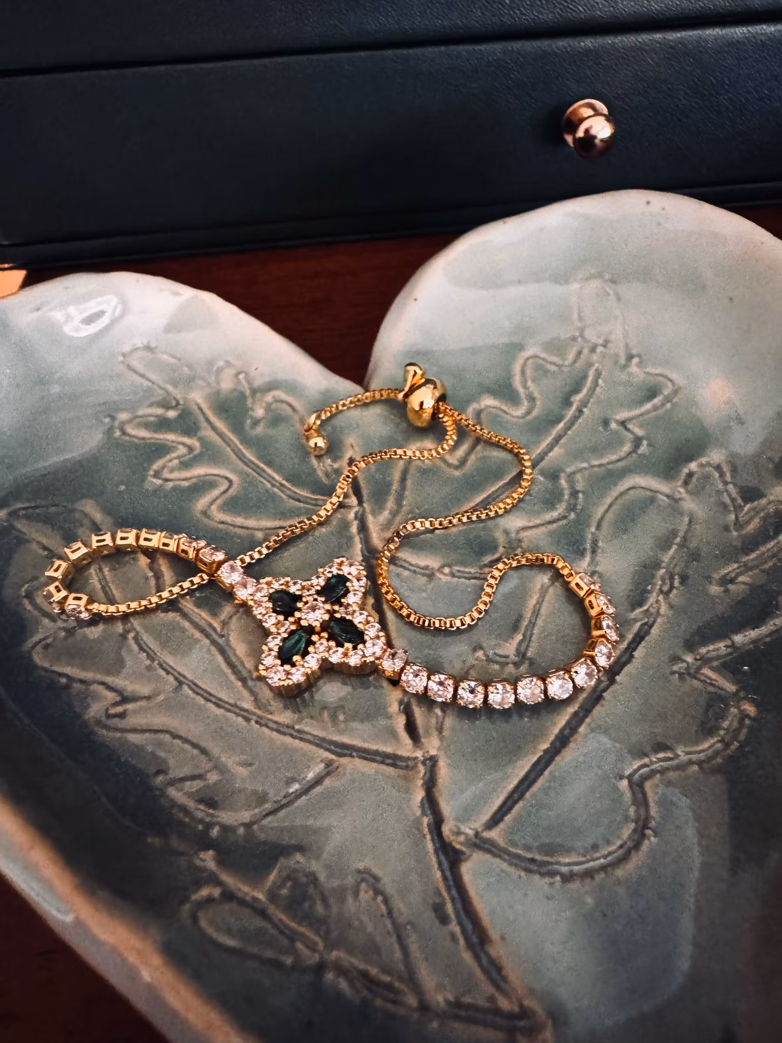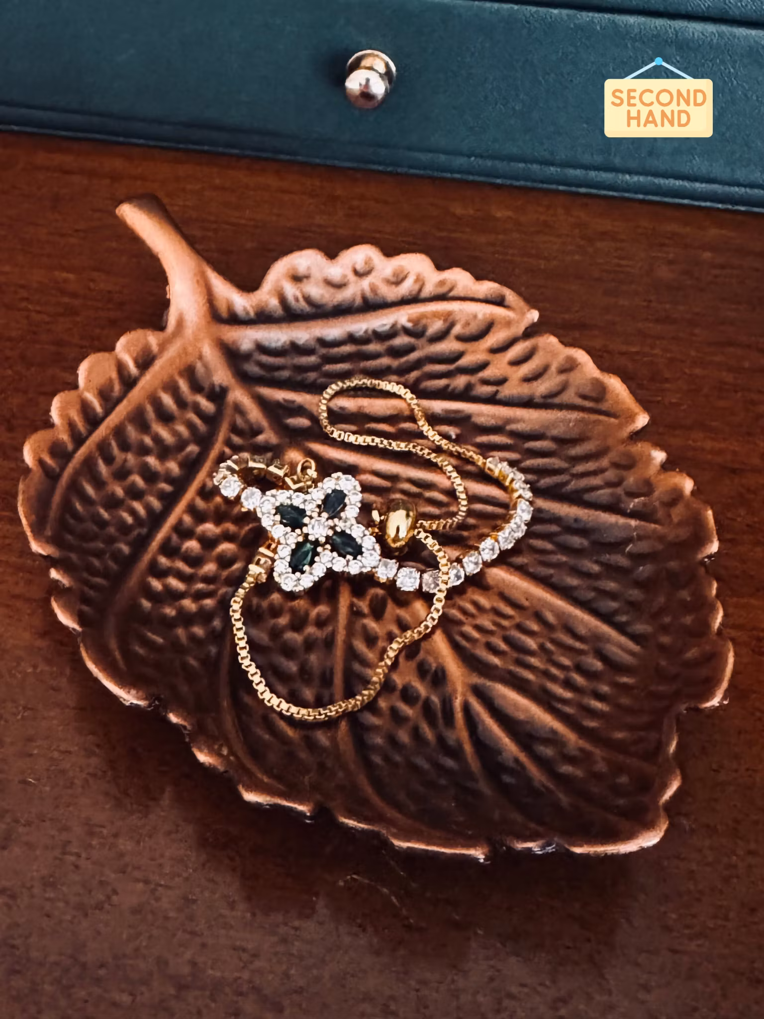 Vackert armband i smaragdgrönt och guld - Second hand
