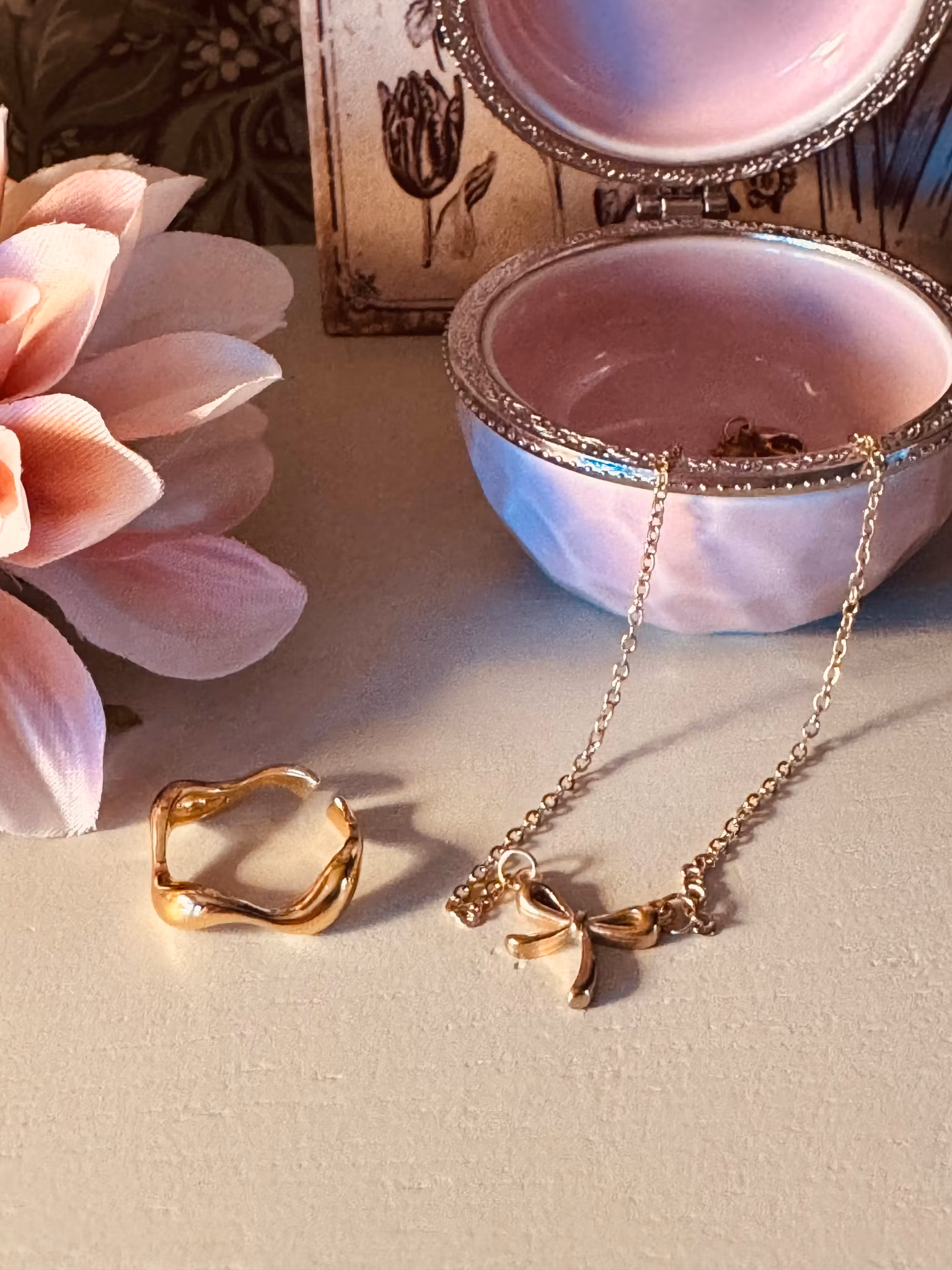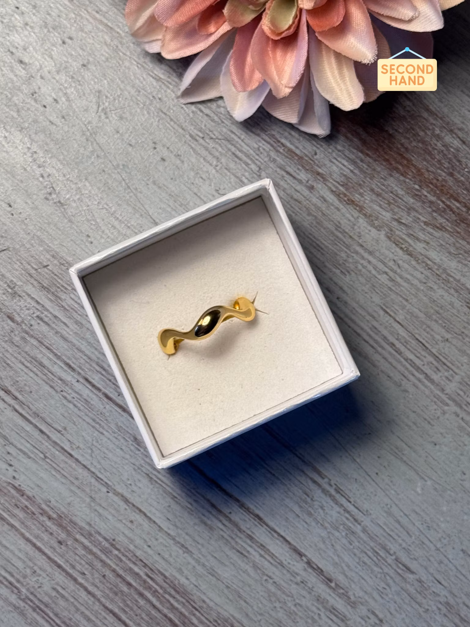 En jättefin guldfärgad ring (Second hand) med formen av en våg som blir väldigt vacker och stilren på fingret. Ett smyce att använda varje dag.