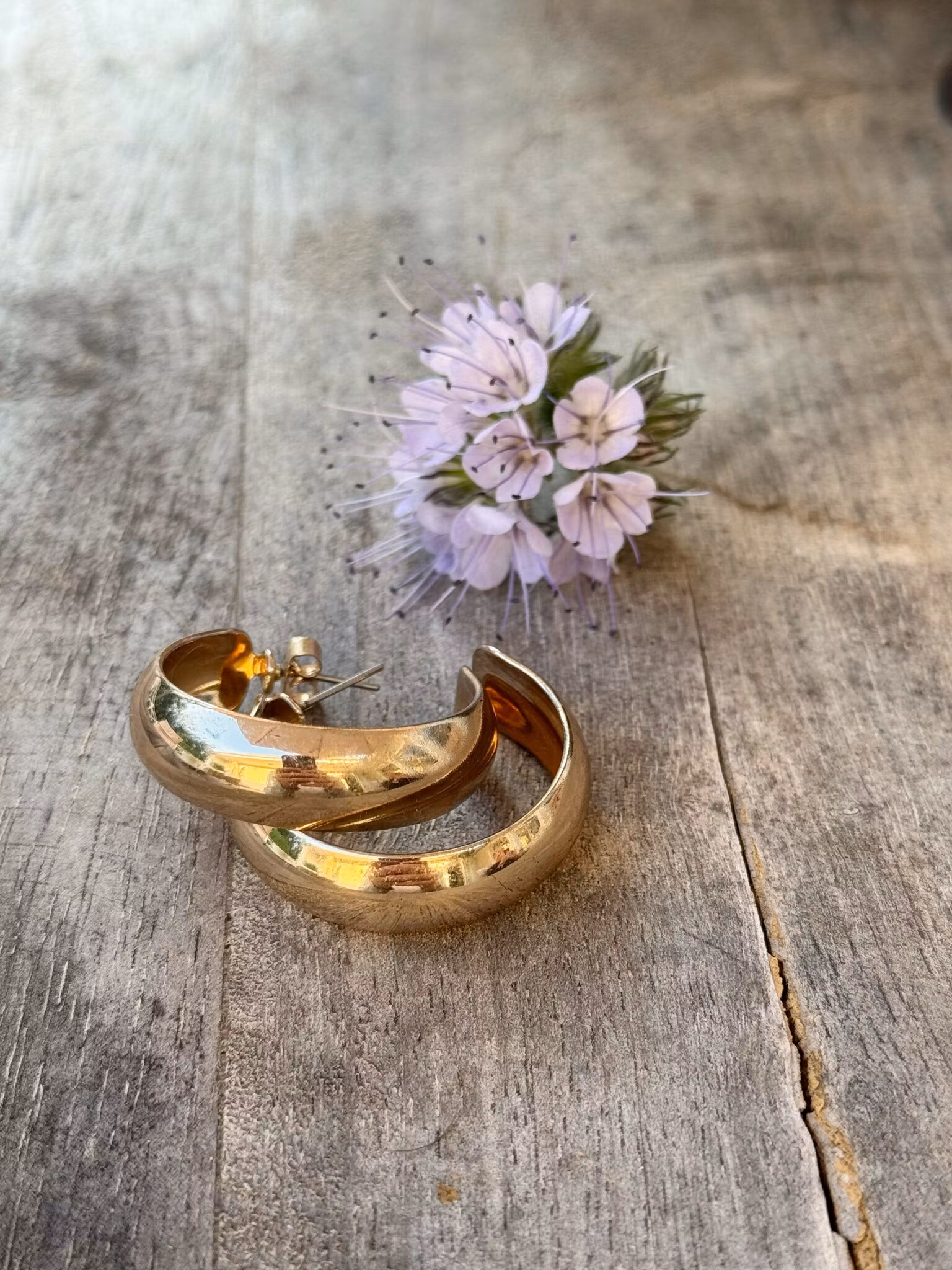 Stilrena guldfärgade örhängen (second hand) som passar både till vardag och fest. Storlek 3 cm i diameter.