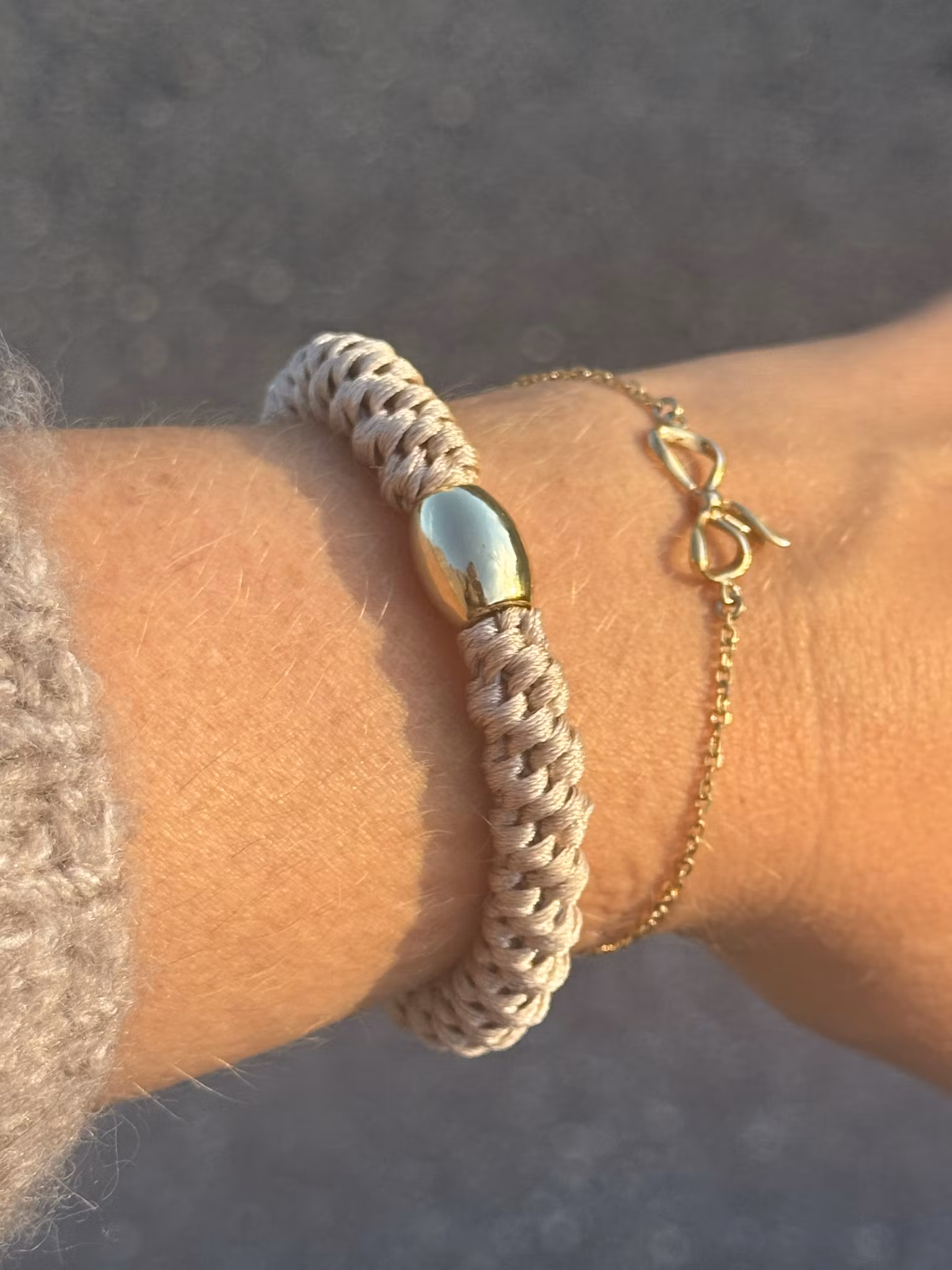 En tidlös beige hårsnodd med guldfärgad pärla – enkel, stilren och alltid rätt. Fin både i håret och runt handleden, som en liten detalj som gör mer än man tror. Den här snodden är mjuk, följsam och riktigt elastisk – utformad för att sitta bekvämt hela dagen utan att tappa formen.