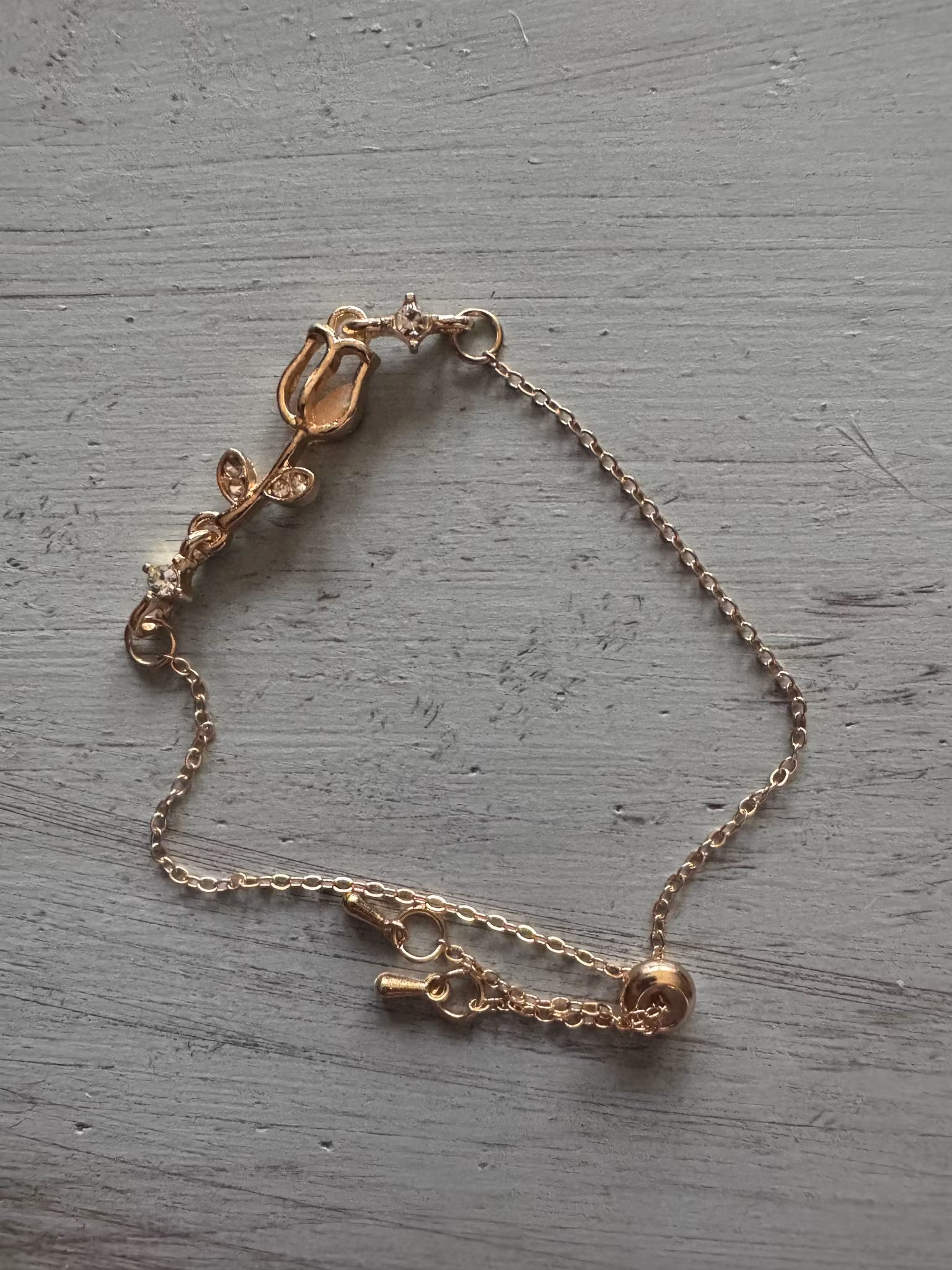 Sött guldfärgat armband med motiv av en tulpan. Ett armband som du kan använda såväl till vardags som fest. Justerbart.