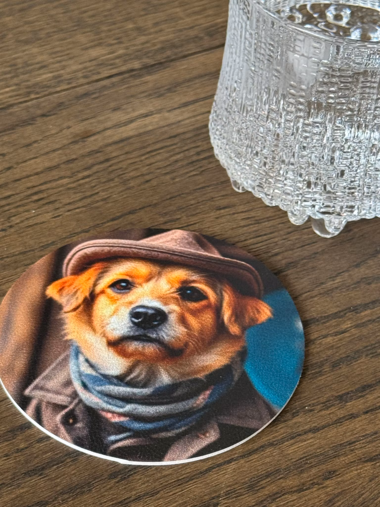 Skydda bordet med stil – och ett leende! Våra glasunderlägg i konstläder kombinerar praktisk funktion med charmig design. Varje underlägg pryds av unika tryck föreställande eleganta hundar, nyfikna katter och bedårande kaniner – alla avbildade i en klassisk, gammaldags stil med en humoristisk twist.