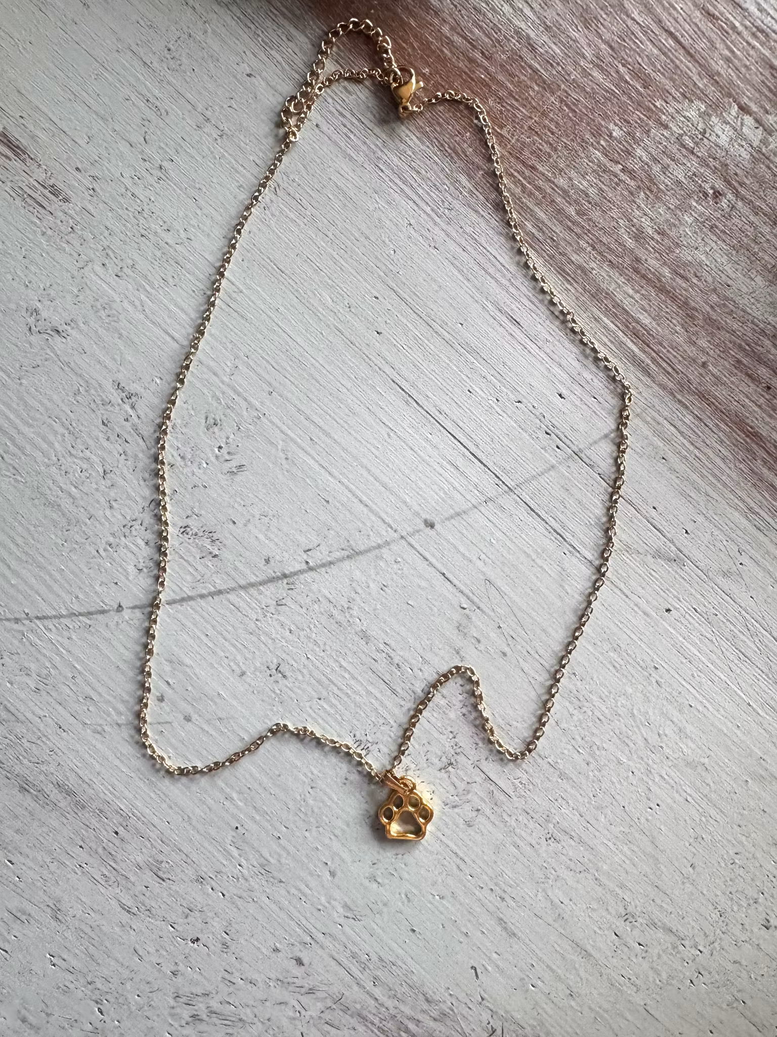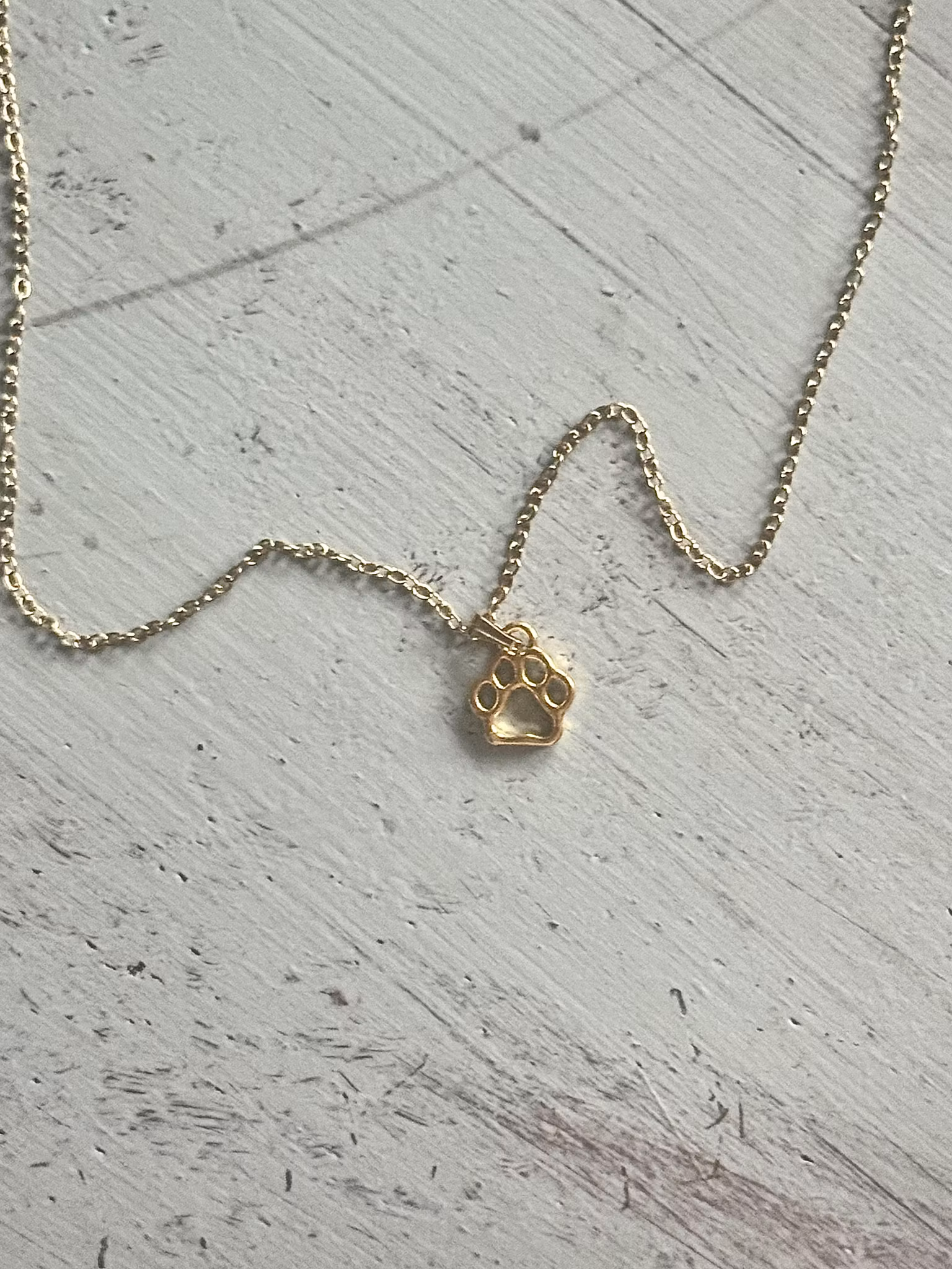 Finaste halsbandet med tass, hur söt? Guldfärgat halsband med en berlock föreställande en liten tass. Ge bort till någon som älskar hundar eller till dig själv.