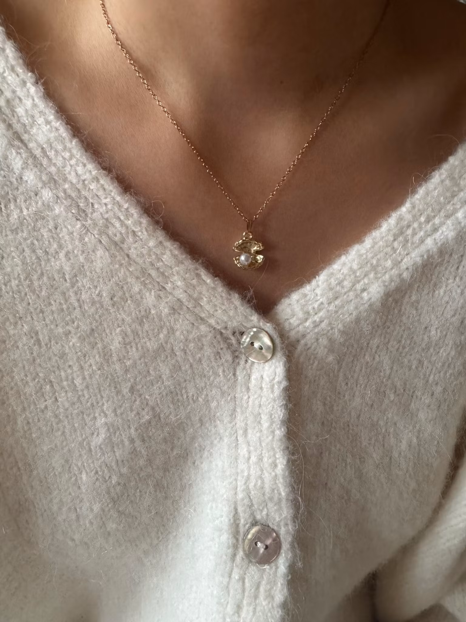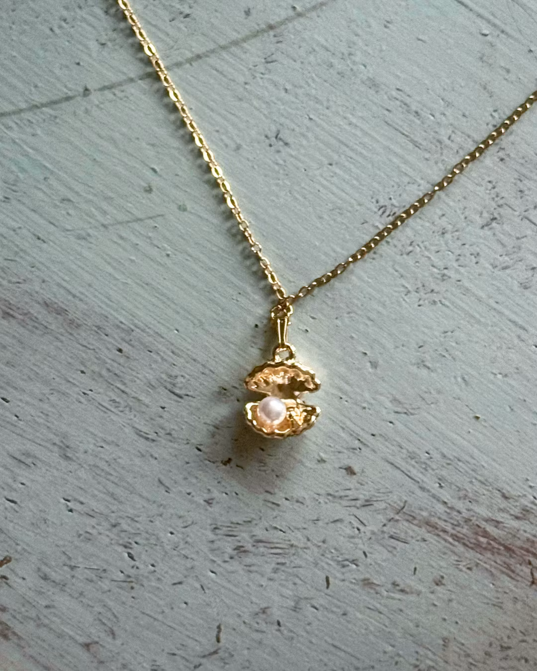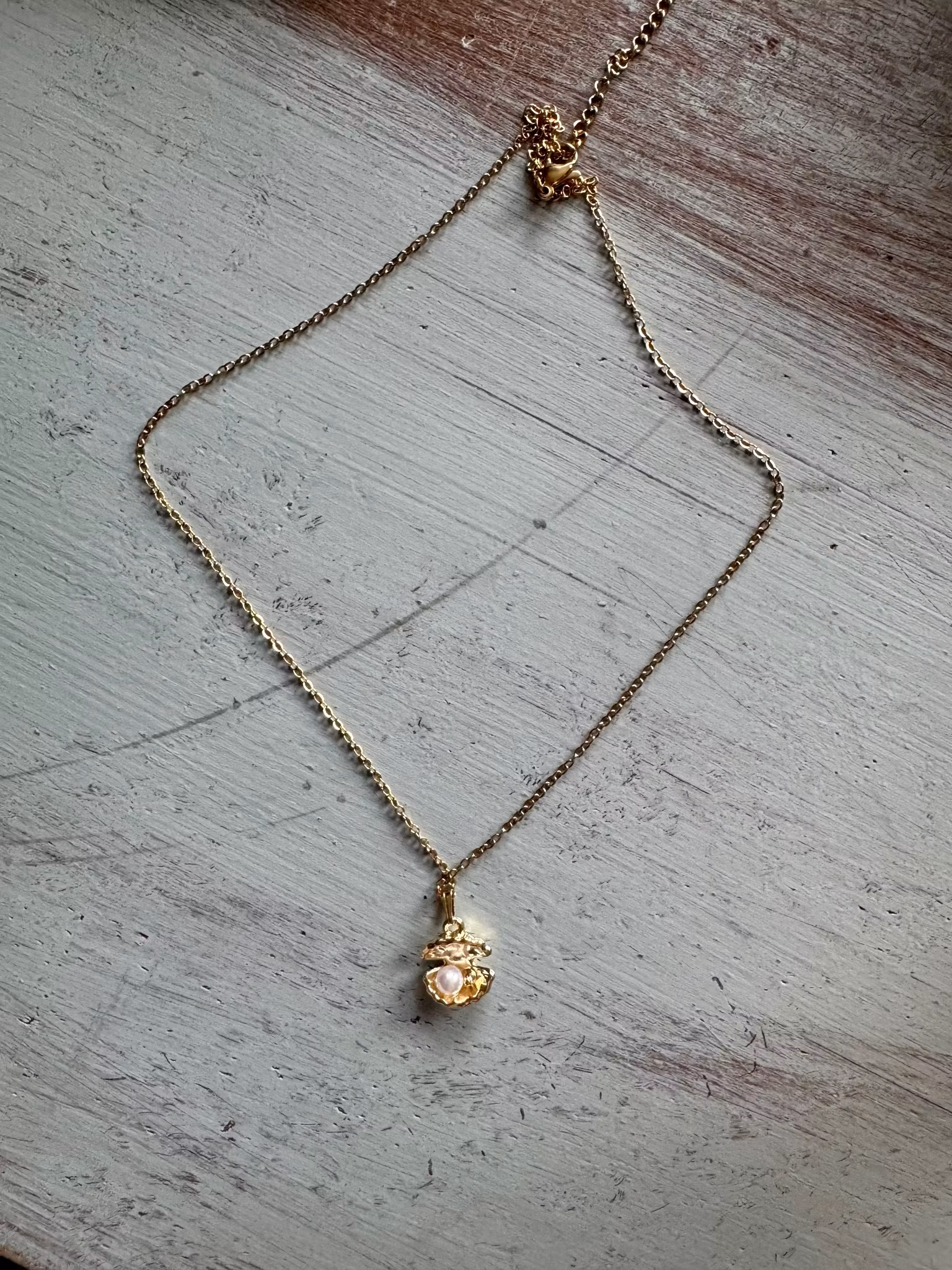 Hur söt? Guldfärgat halsband med en berlock föreställande en liten snäcka med en pärla i. Ge bort till någon som älskar havet eller till dig själv som ett vackert och betydelsefullt smycke.