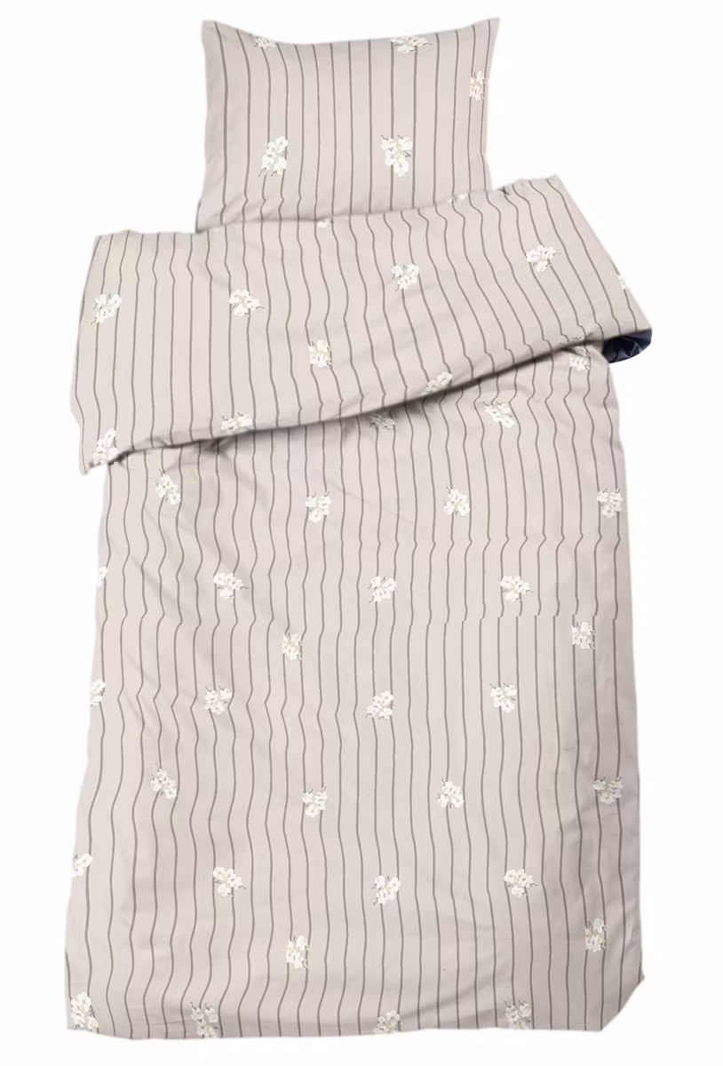 Härliga påslakan i 100% bomull. Mönstret är vackert randigt med blommor. Blir romantiskt och vackert och ett lyft för din säng oavsett om det är i sovrummet, husbilen eller husvagnen.