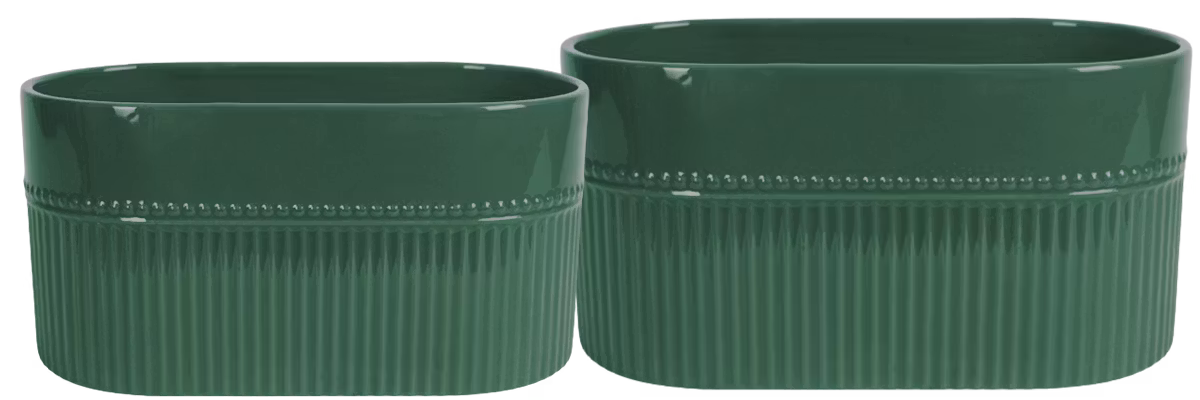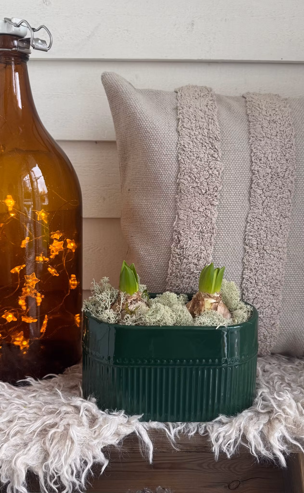 En vacker oval kruka i pigg jadegrön nyans som lyfter både höst- och julens arrangemang. Fyll den med mossa, kvistar, hyacinter eller andra säsongsdetaljer för en stämningsfull dekoration. Den fräscha gröna färgen gör att krukan även passar perfekt året runt – som en glad färgklick i hemmet. Finns i två storlekar, så du enkelt kan variera eller kombinera för en harmonisk helhet.