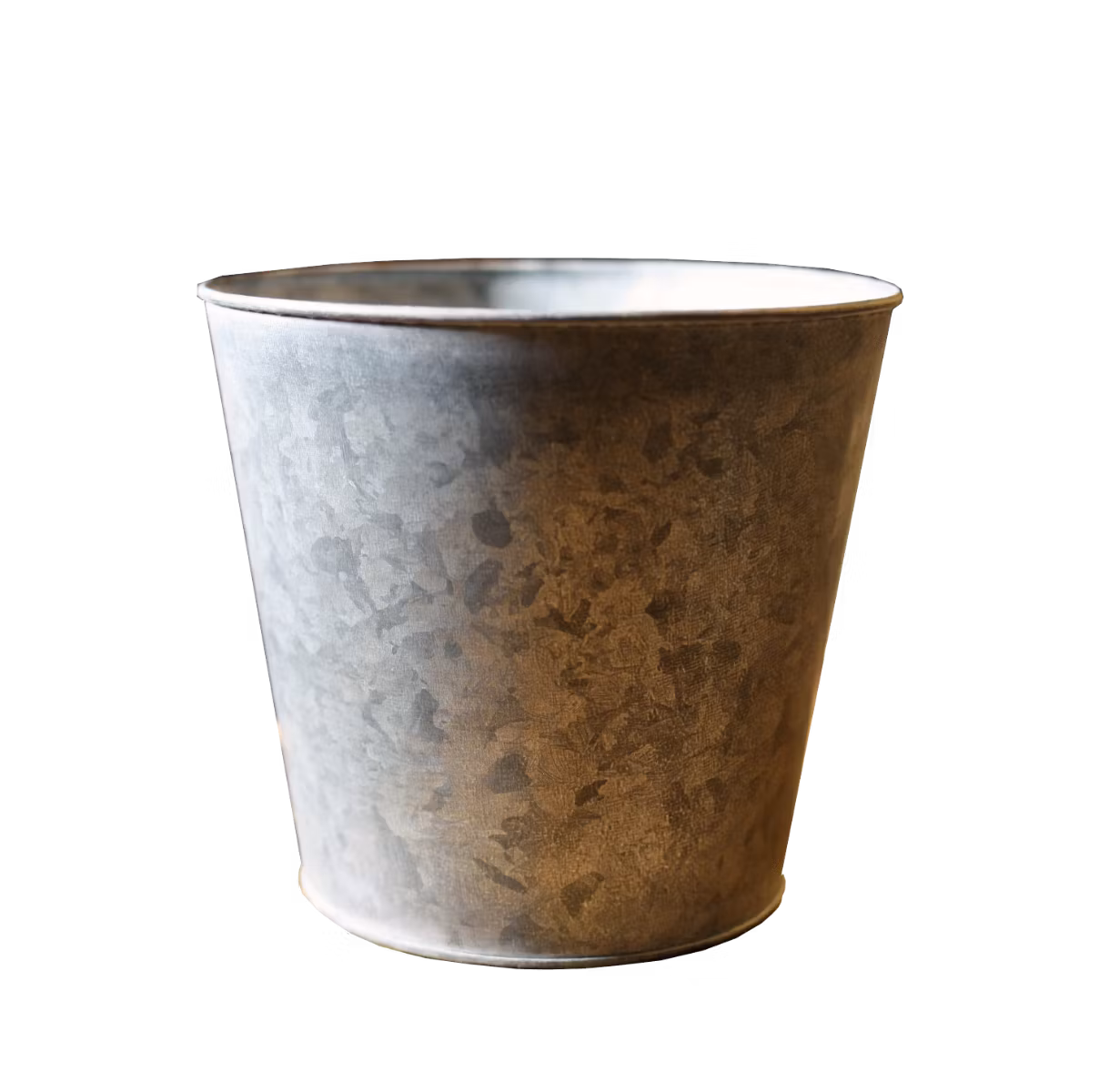 Denna stilrena zinkkruka är perfekt för både inomhus- och utomhusbruk. Den rustika designen ger en lantlig charm och passar lika bra för blommor som örter. Zinkens naturliga patina gör att krukan åldras vackert över tid och blir en tidlös detalj i din trädgård eller på balkongen. Storlek: 15 cm i diameter och 15 cm hög.