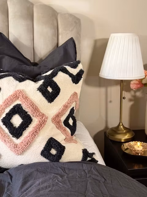 Otroligt snygga kuddfodral i rosa, elfenben och svart. Kuddarna har en härlig struktur på framsidan. Passar perfekt i soffan eller sängen. Finns i 2 exemplar (säljs styckvis).