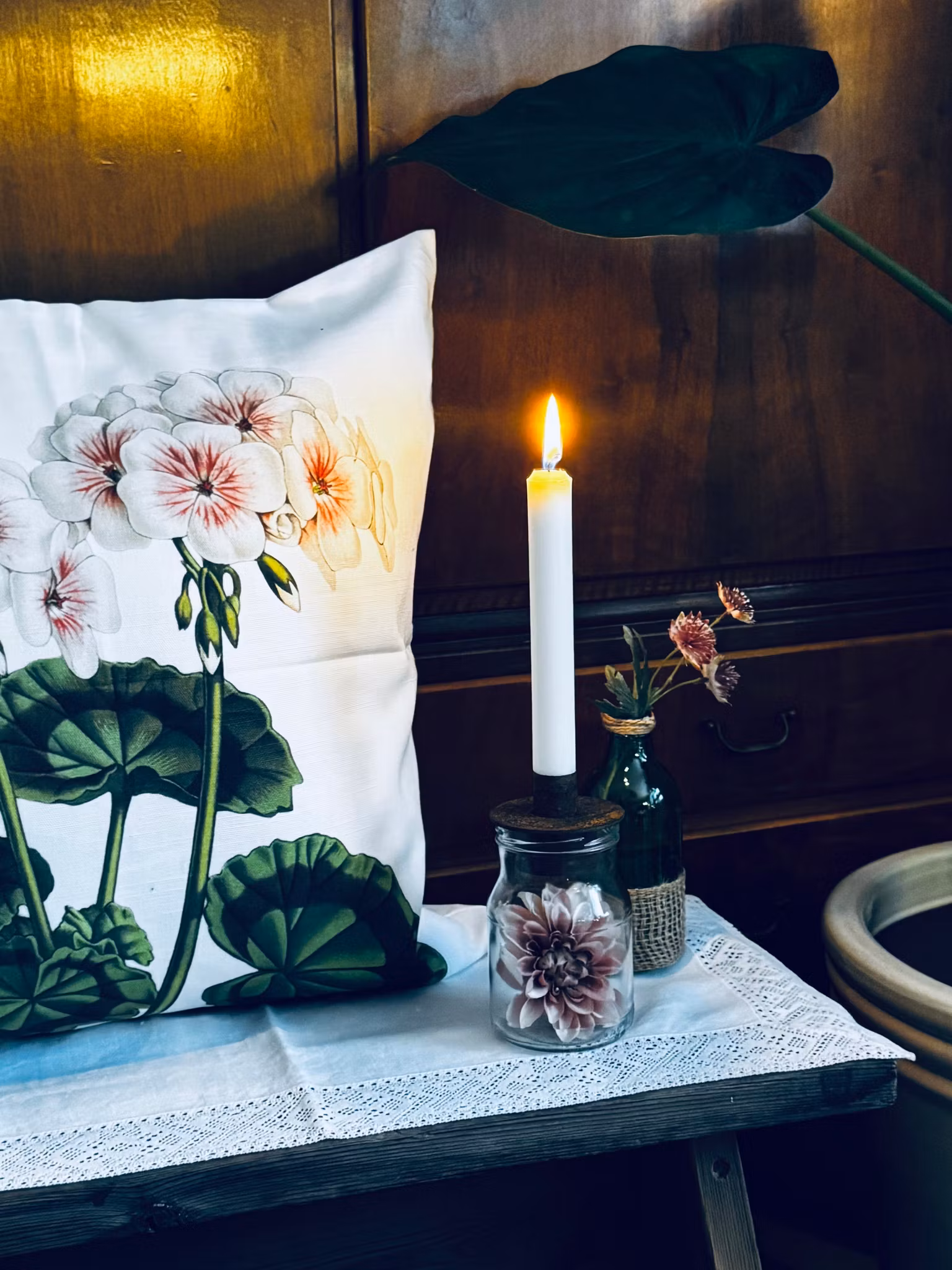 Upptäck den är finurliga ljushållaren i järn med en härlig patinerad kopparfärg, som ger en naturlig vintagekänsla. Glasburken som ljushållaren sitter i är en helt vanlig gurkburk där vi förvandlat hela ekipaget till en vacker och dekorativ ljushållare som kan dekoreras precis som just du önskar. Till exempel kan du enkelt lyfta bort ljushållaren och fylla burken och en blomma som flyter, eller annan växt, kanske lite granris eller mossa vintertid. Endast fantasin sätter gränser! Självklart går det att använda ljushållaren som den är också utan glasburk. Ekipaget ljushållare + burk finns i två storlekar. Välj storlek i steget innan kassan.