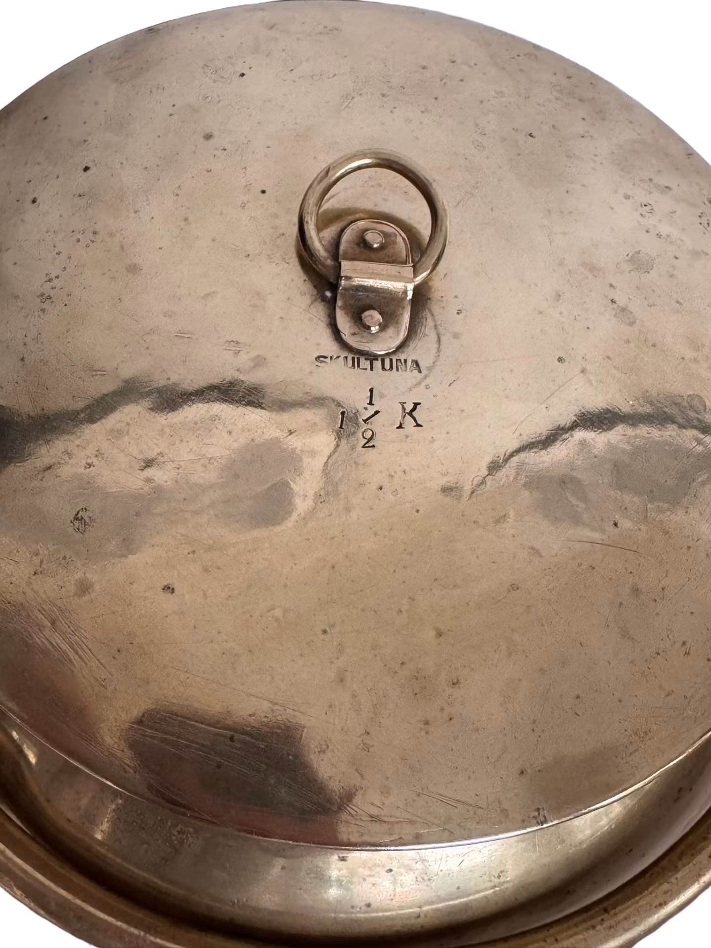 Världens finaste kopparkruka kan bli din! En stor bulkruka som passar perfekt till lite större växter. Plantera ner säsongens växter, till exempel penséer till sommaren och minigran till jul. Eller ha den stående framme som dekoration. Krukan har märkning Skultuna och en gravyr som vi tror är "JKSD 1859”