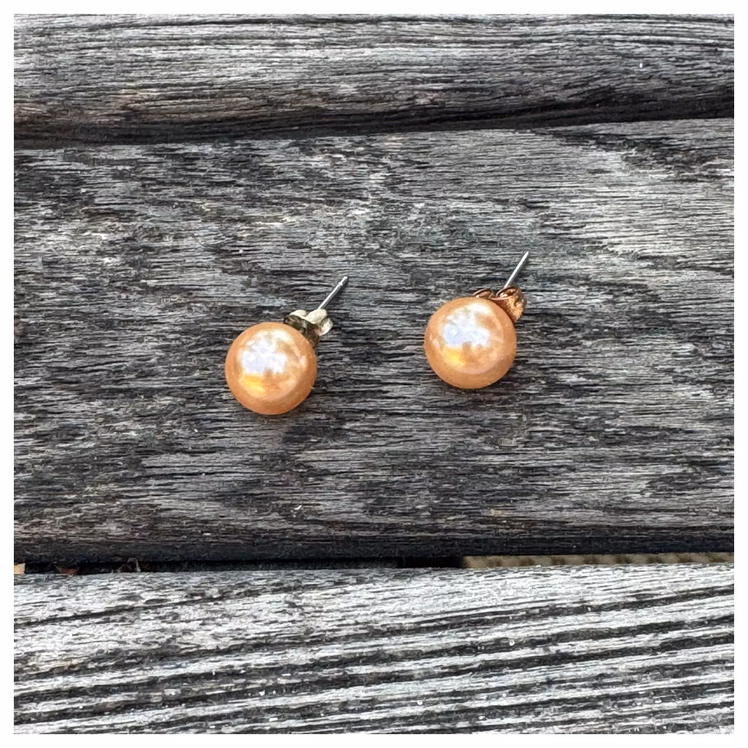 Stilrena örhängen för alla tillfällen (second hand) i skimrande pärlemor-rosa färg. Mycket gott skick. Storlek 9 mm.