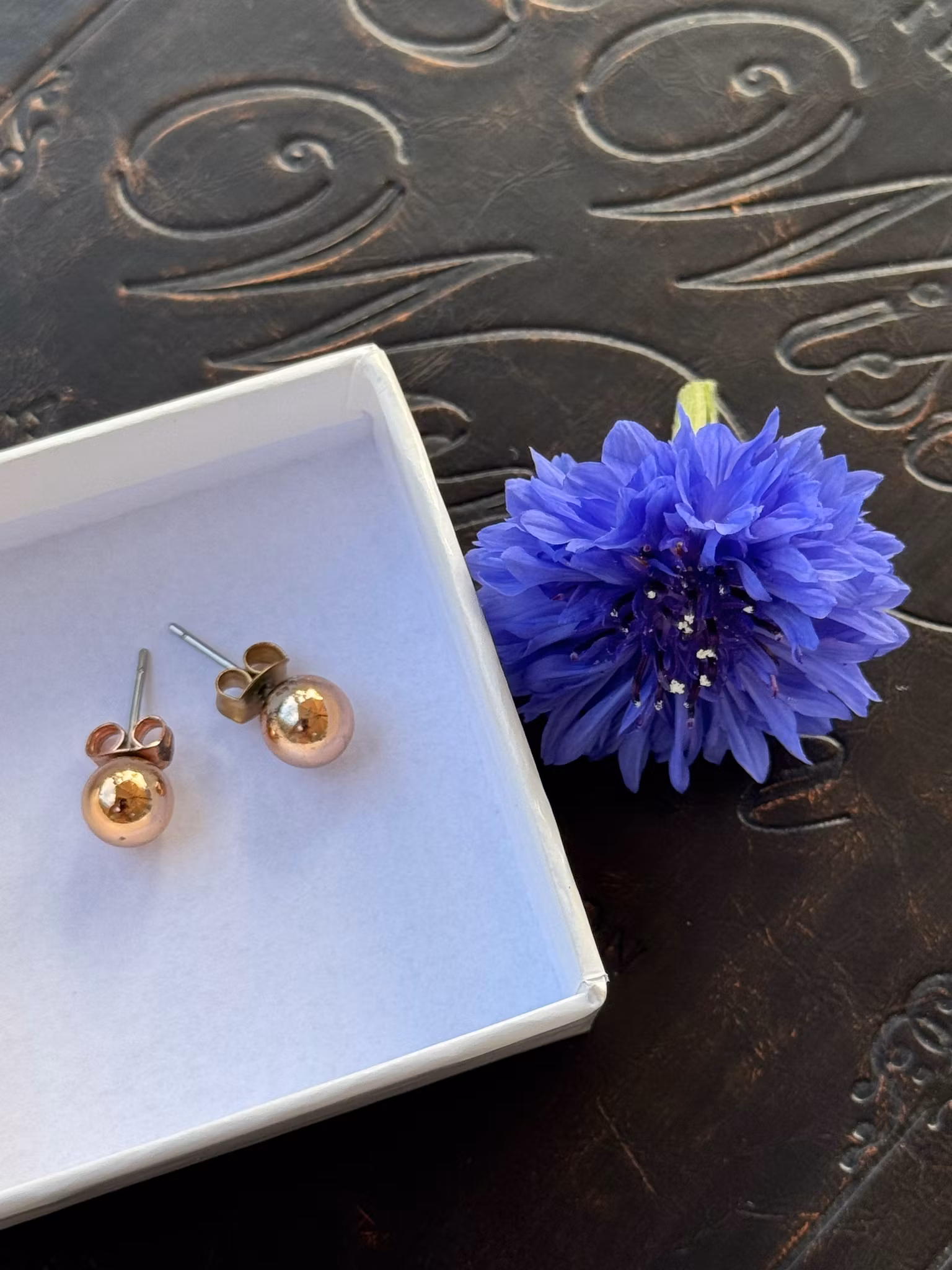 Stilrena örhängen för alla tillfällen (second hand). Knoppar i skimrande pärlemor-rosa färg. Mycket gott skick. Storlek 9 mm.