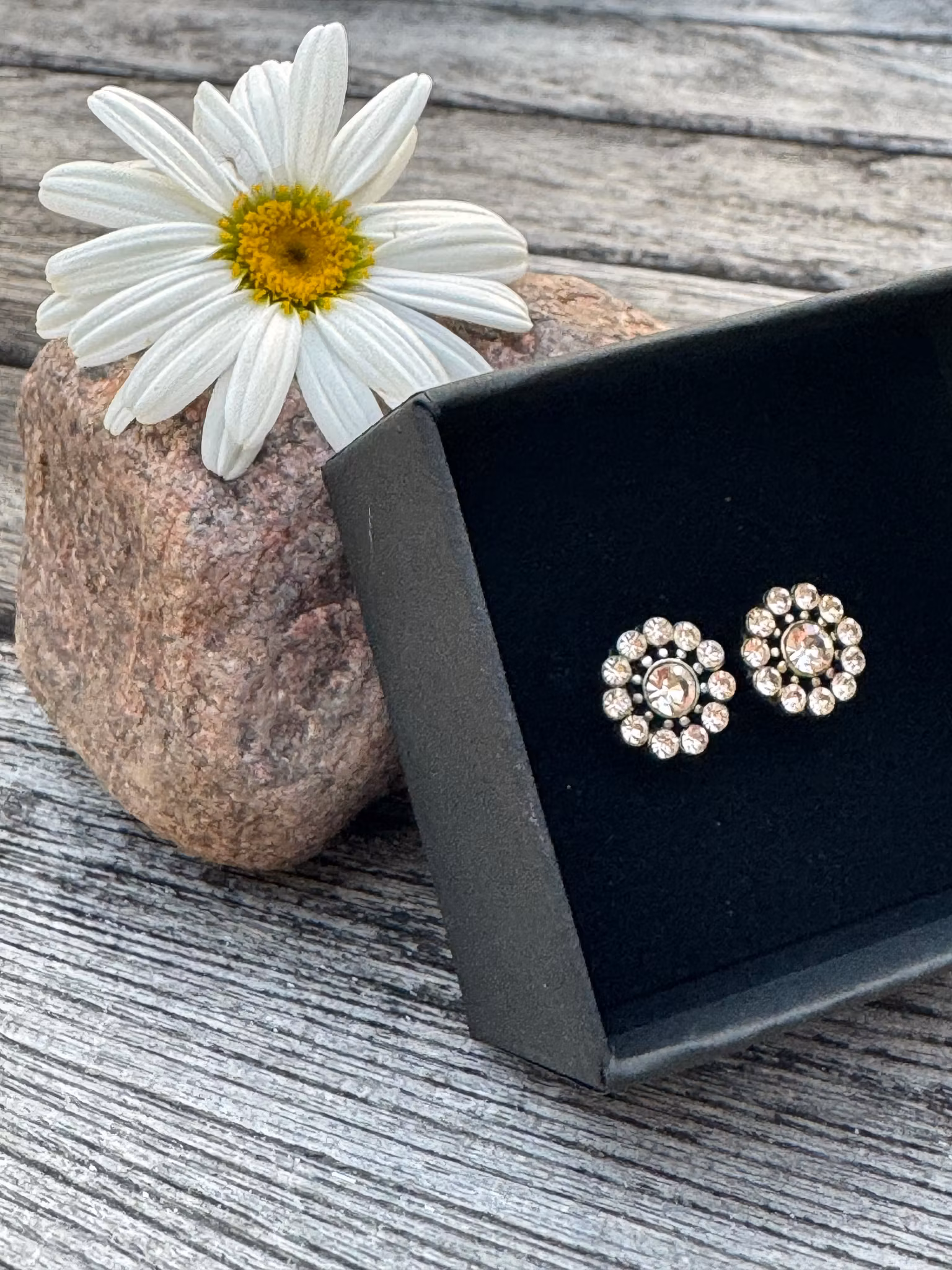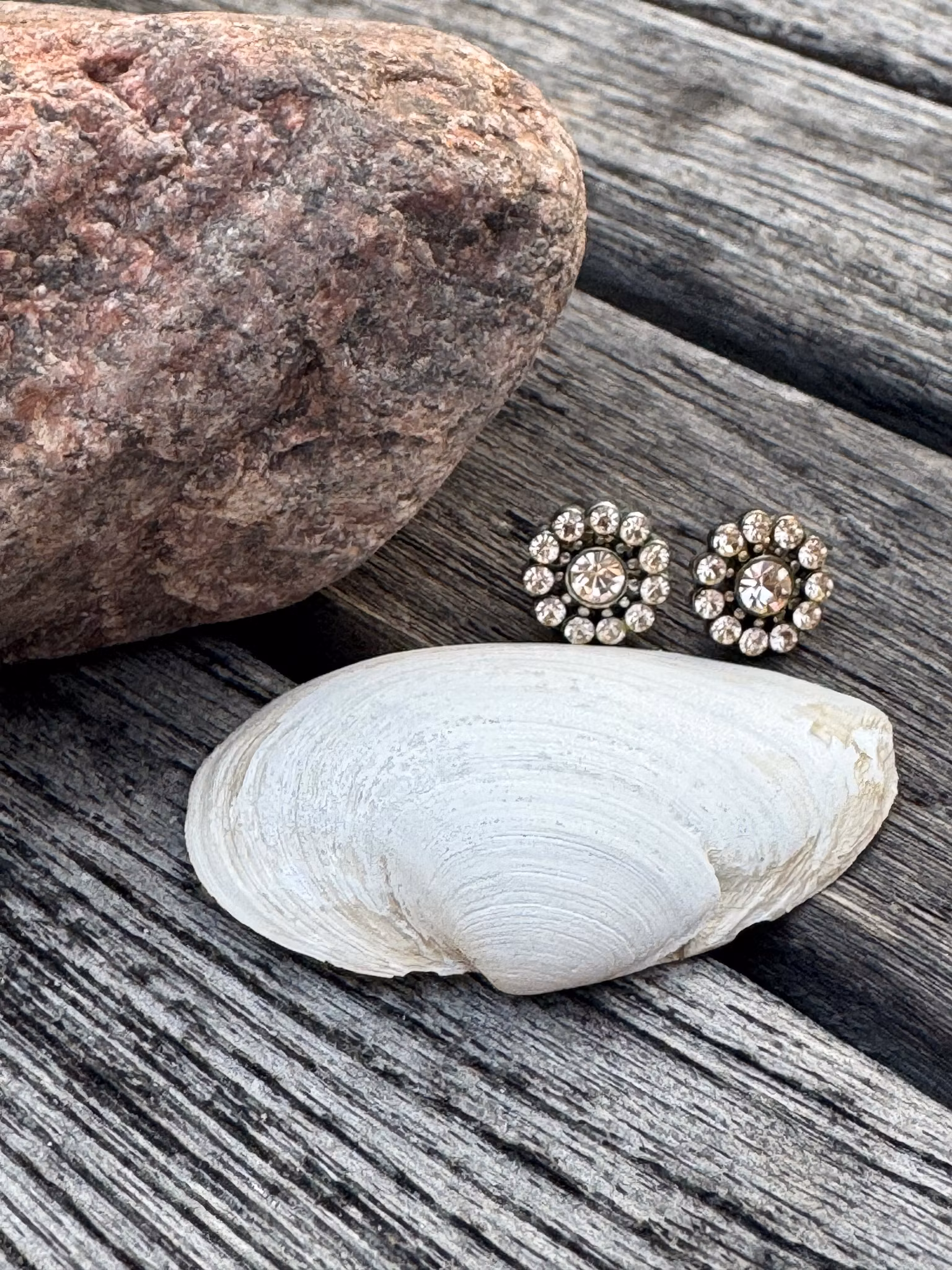 Magiskt vackra silverfärgade örhängen som gnistrar fint (second hand). Mycket gott skick! Storlek 1 cm i diameter.