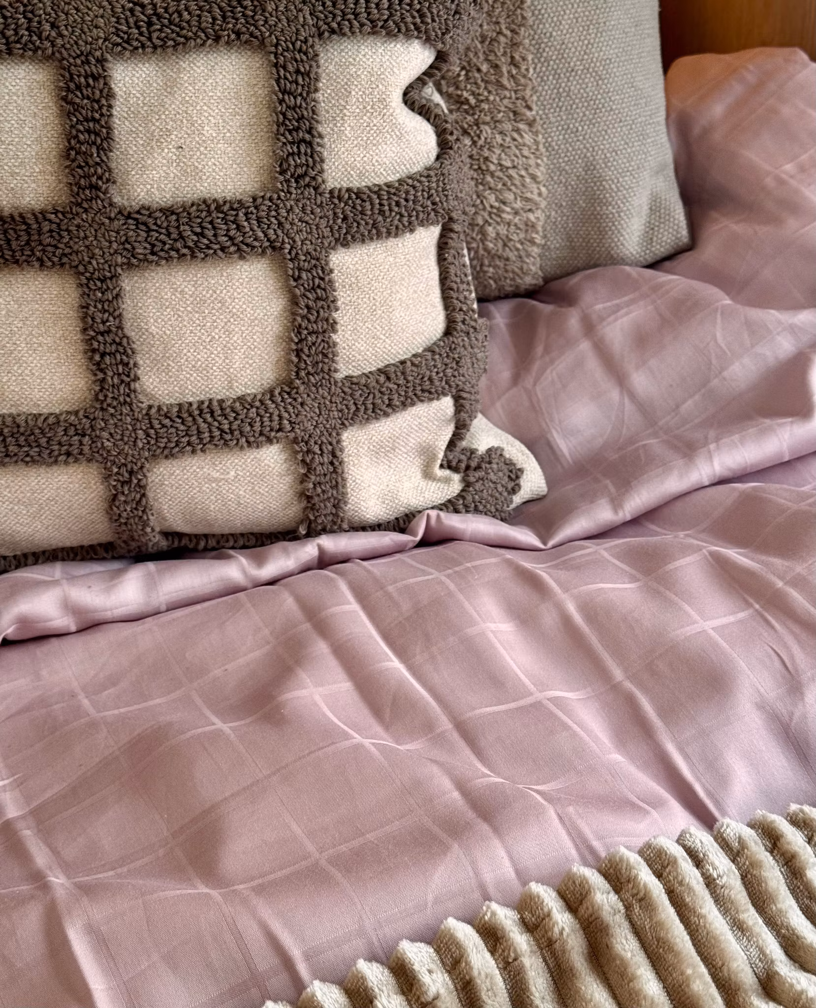 Vackert rosafärgade påslakan i 100% bomull satin med svagt rutmönster. Med sitt sobra och diskreta mönster kommer de här påslakanen bli ett lyft för din säng oavsett om det är i sovrummet, husbilen eller husvagnen. Lätt att matcha med kuddar och filt.