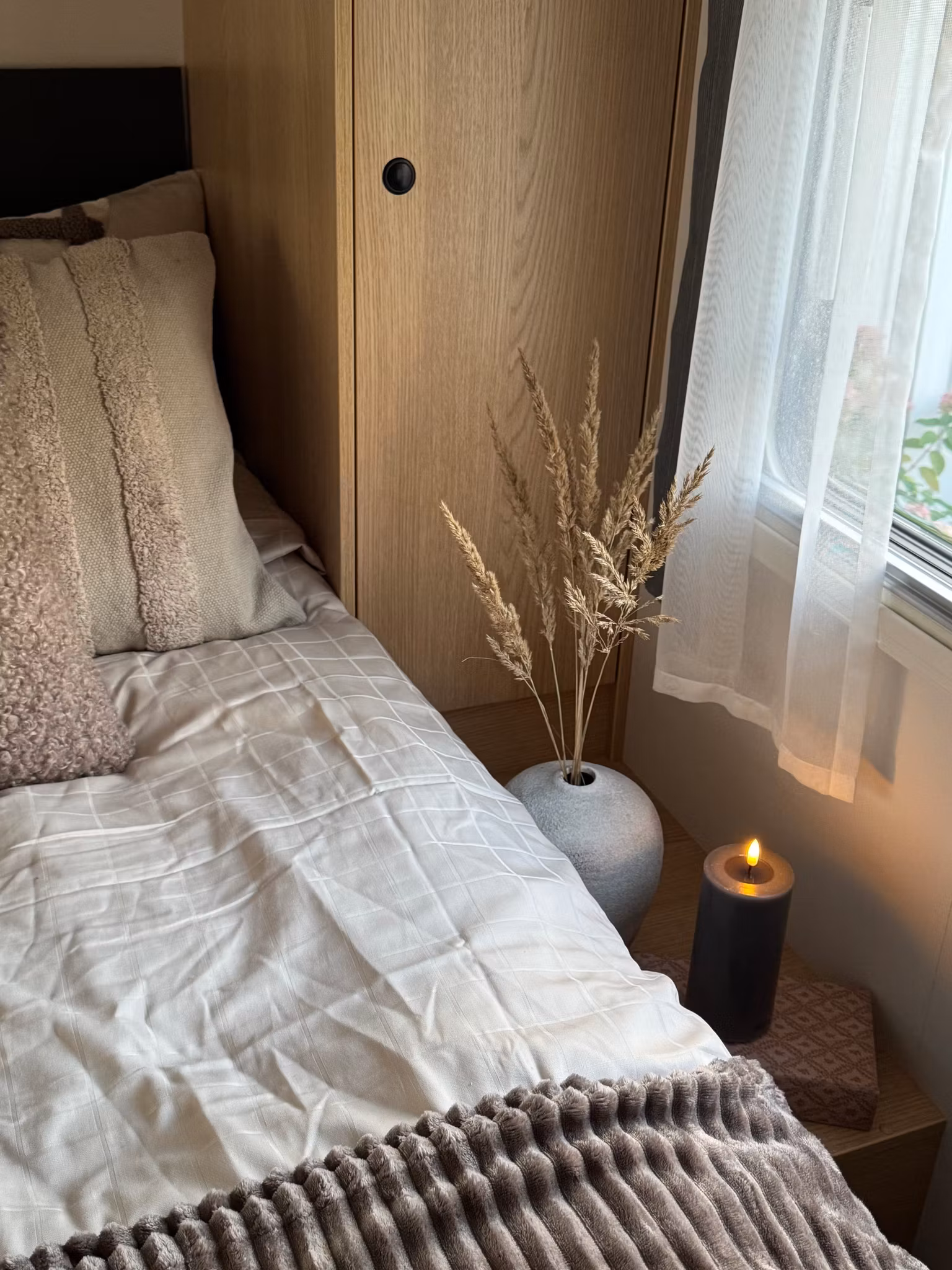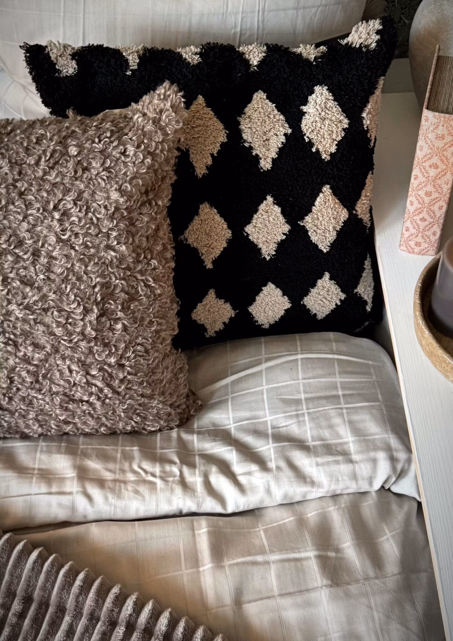 Sandfärgade påslakan i 100% bomull satin med svagt rutmönster. Med sitt sobra och diskreta mönster kommer de här påslakanen bli ett lyft för din säng oavsett om det är i sovrummet, husbilen eller husvagnen. Lätt att matcha med kuddar och filt.