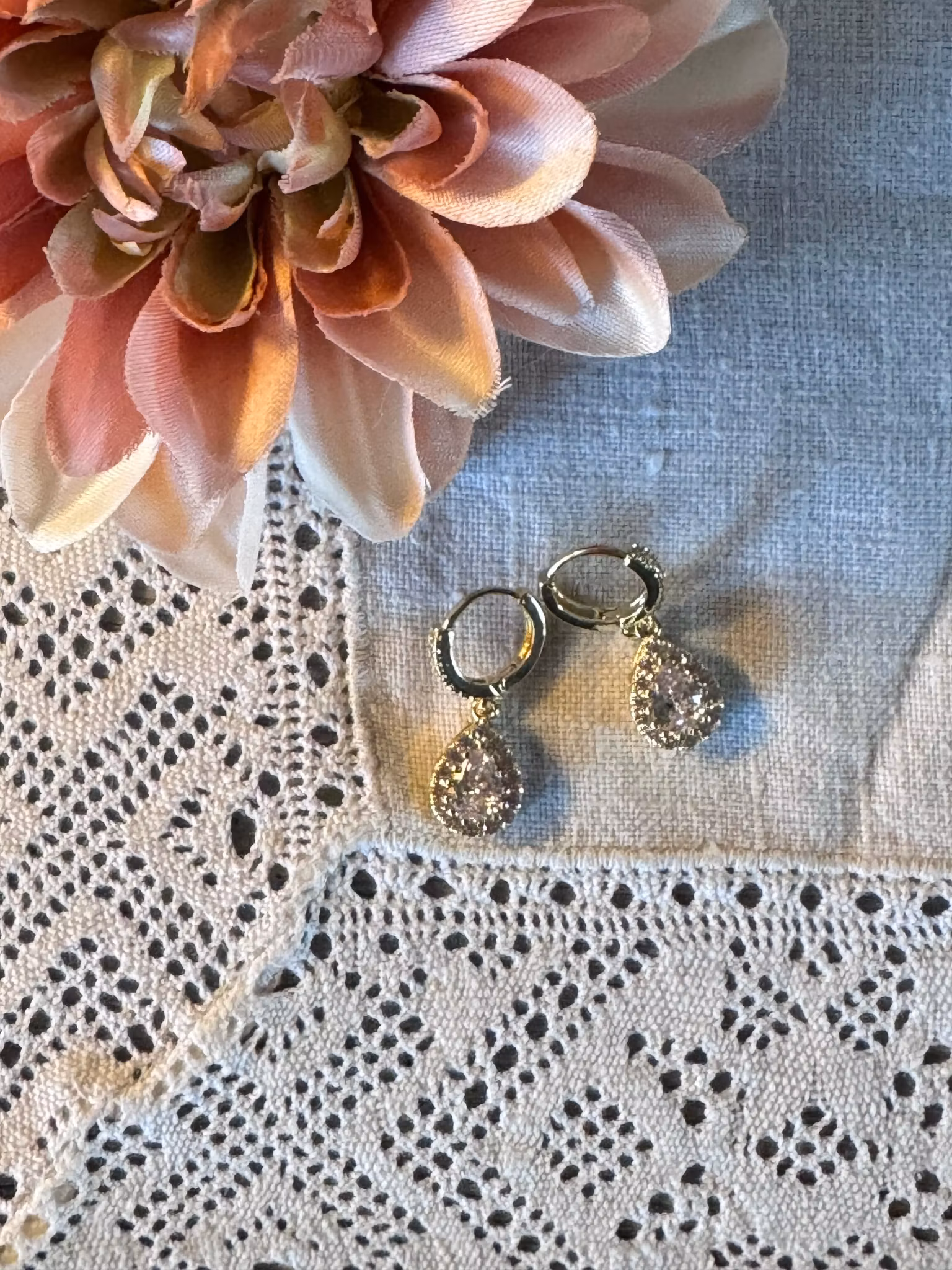 Fina örhängen med vita stenar (Second hand) som glittrar vackert. Passar på festen eller till vardags. Ett smycke du kommer få stor glädje av.
