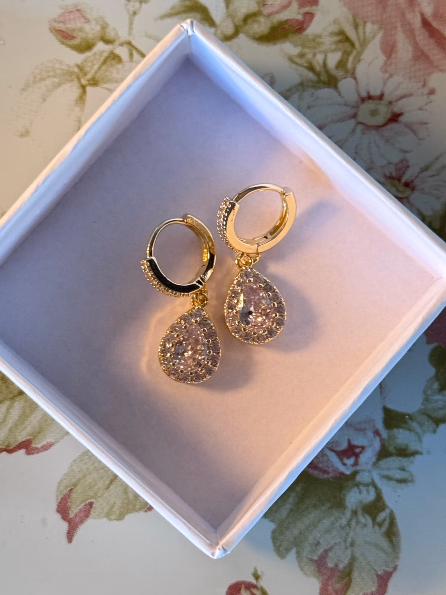Fina örhängen med vitastenar som glittrar vackert. Passar på festen eller till vardags. Ett smycke du kommer ha stor glädje av. Rejält lås.