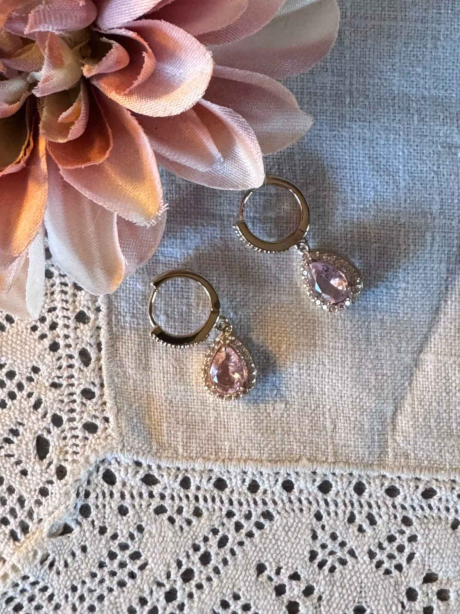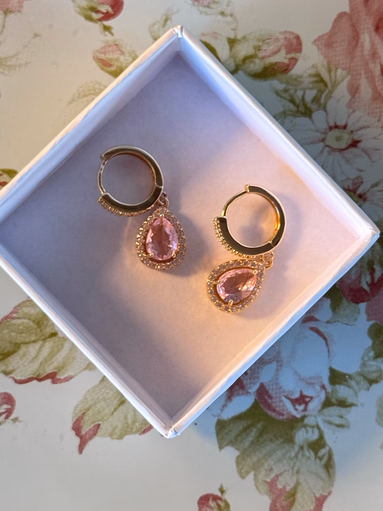 Fina örhängen med rosa stenar (Second hand) som glittrar vackert. Passar på festen eller till vardags. Ett smycke du kommer få stor glädje av.