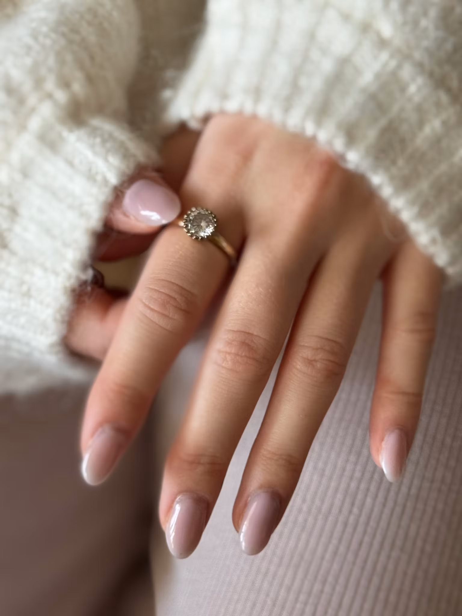 Jättesöt stilren ring i guldfärg och ljus sten (second hand) i mycket gott skick.