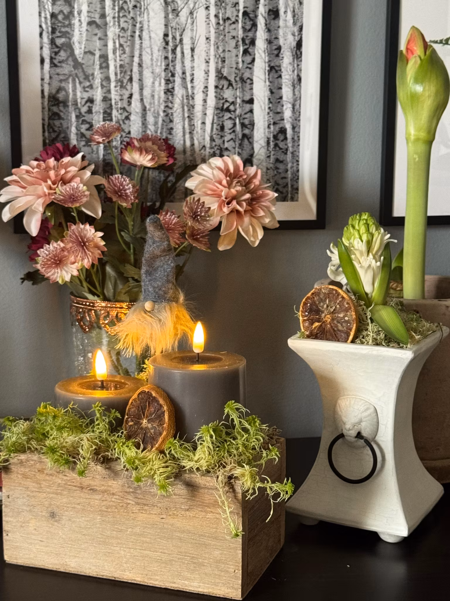 Med den här snygga och lite egna vasen med hängen kan du sätta ner säsongens blommor (tex lite granris på vintern), men kan också användas för lökväxter Hyacint eller Snödroppar.