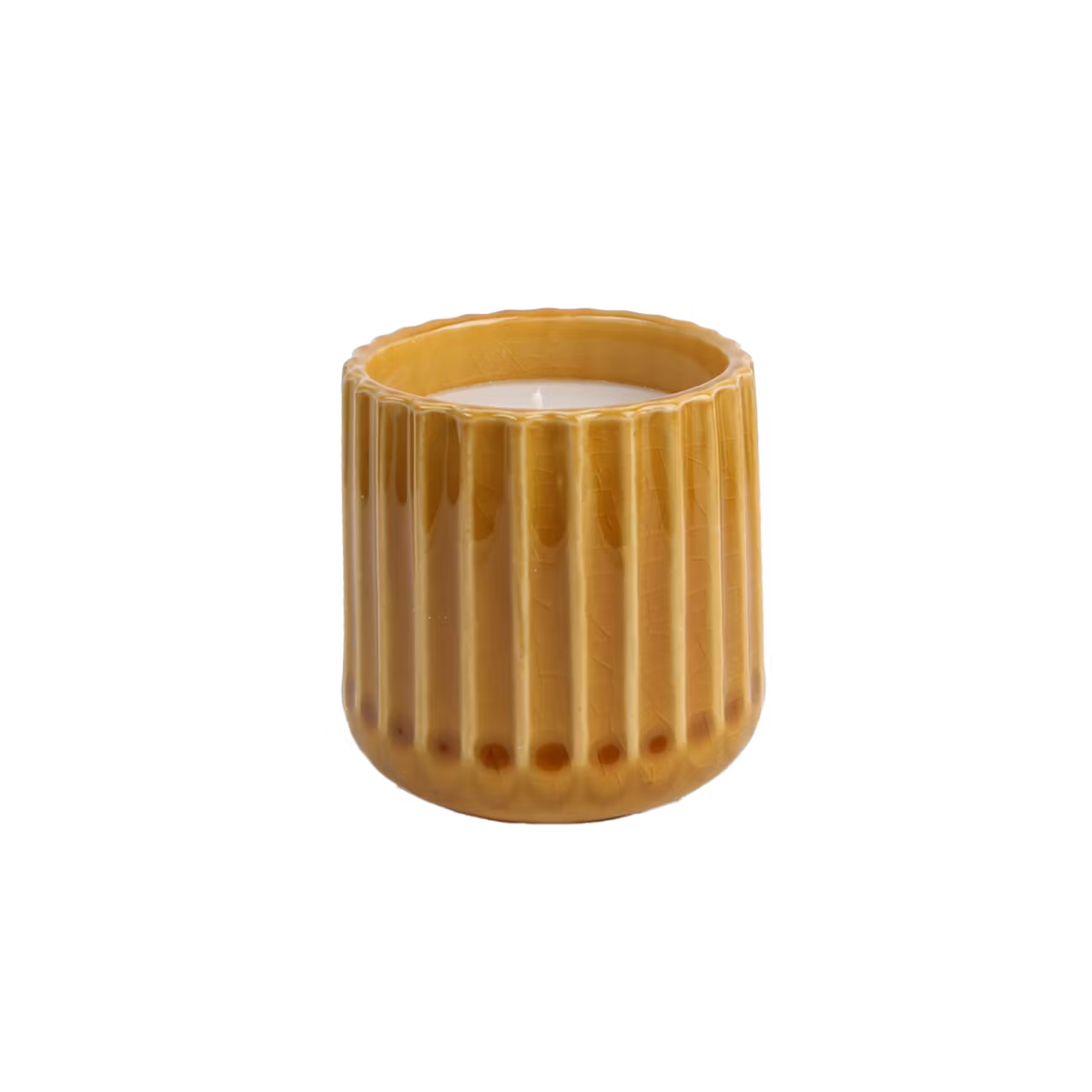 Skapa en varm och inbjudande atmosfär med denna vackra ljuslykta i en trendig brun/gul nyans. Den stilrena designen passar lika bra inomhus som på uteplatsen och sprider ett mjukt, behagligt ljus. När ljuset brunnit ut kan lyktan enkelt återanvändas med ett nytt ljus, vilket gör den både praktisk och hållbar. Storlek: 8 cm i diameter och 8 cm hög.