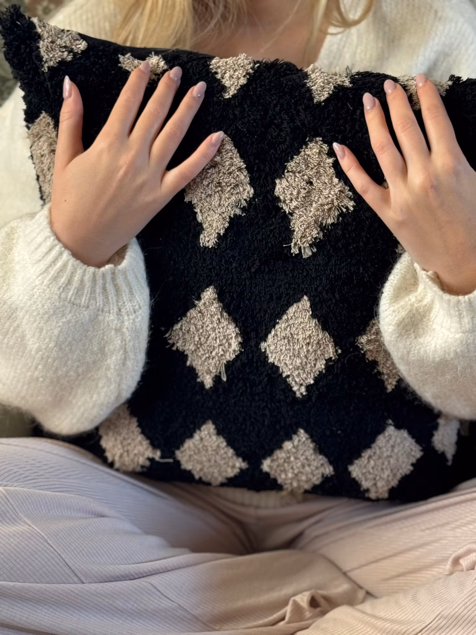 Rustikt och dekorativt kuddfodral i svart & beige. En riktig ögonmagnet! Lätt att matcha.