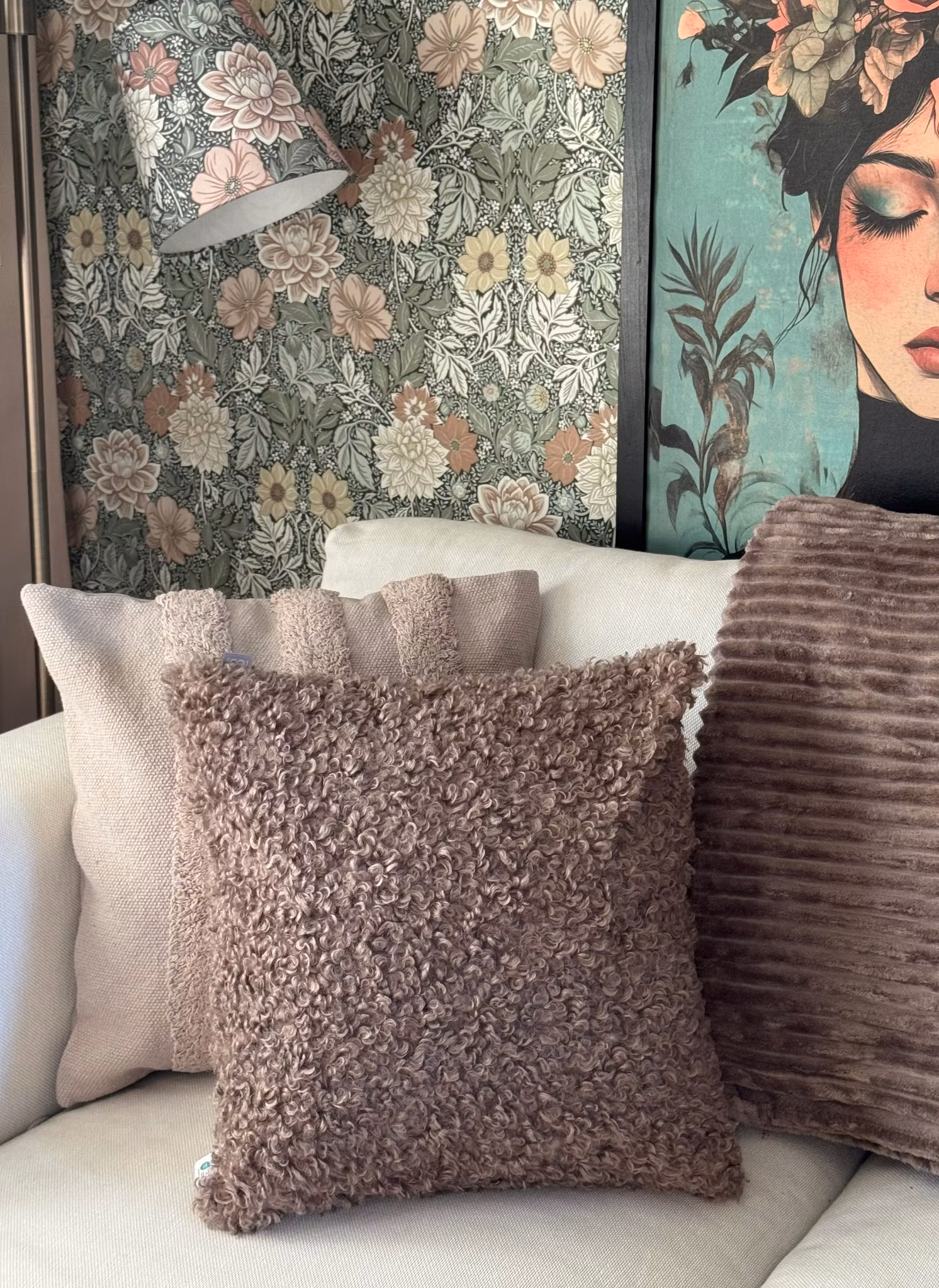 Mysigt och rustikt kuddfodral med får-look. Kuddfodralet Bagge har fått sitt namn av en anledning. Den är mysig, rustik och med ullimitation på framsidan.