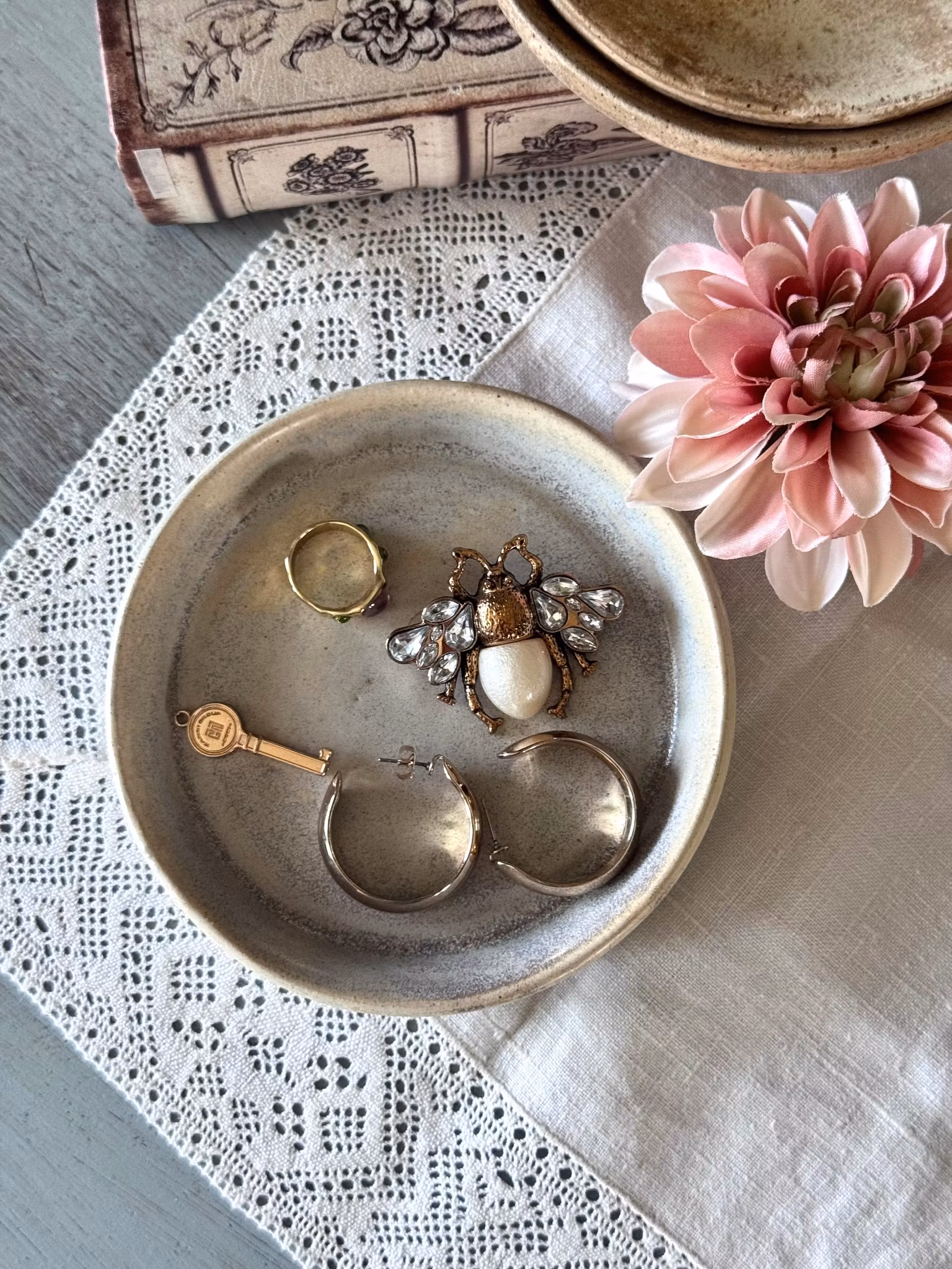 Ett mindre fat eller låg skål om fungerar perfekt till smycken eller som ljusfat. Handgjord av Gemyt living.