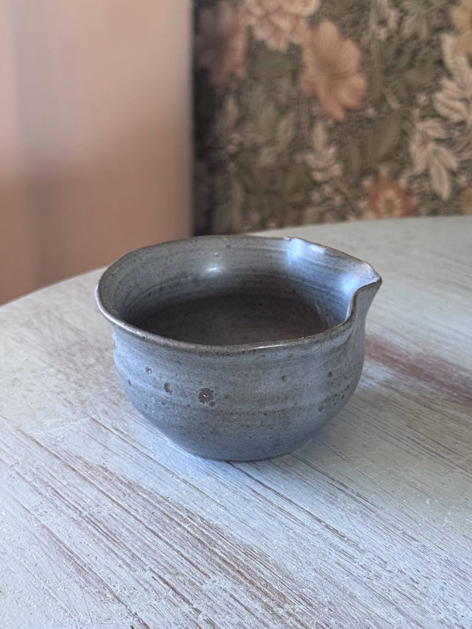 En mindre mjölkkanna i behaglig grå nyans som fungerar perfekt till kaffebordet eller som liten såssnipa. Eftersom vi inte är professionella i vårt skapande så har vi satt priserna därefter. Handgjord keramik är ju faktiskt ganska kostsamt att köpa annars.